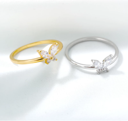 Womens Butterfly Ring Gold Plated Fashion Jewelry Gift For Birthday Copper Zircon Elegant Design Packed Modern