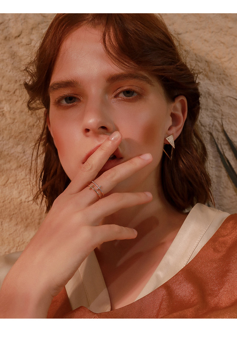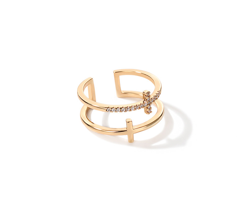 Womens Double Ring Gold Plated Copper Ring With Cross Crown Roman Numeral Patterns Lightweight Fashion Jewelry