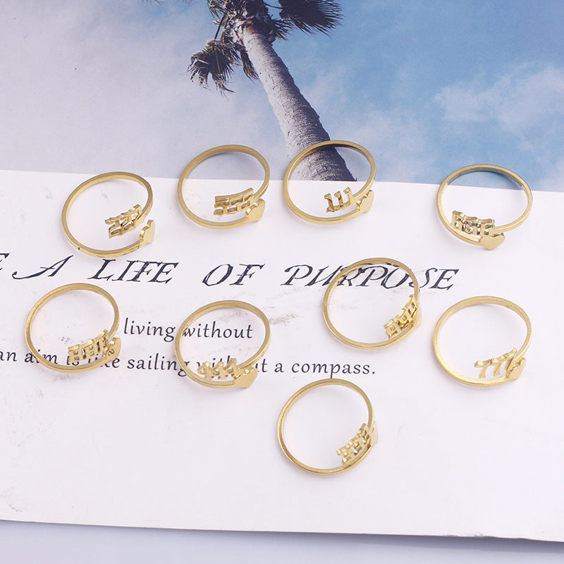 Angel Number Ring Stainless Steel Gold Heart Adjustable Unisex Vintage Fashion Classic Ring For Everyone Today