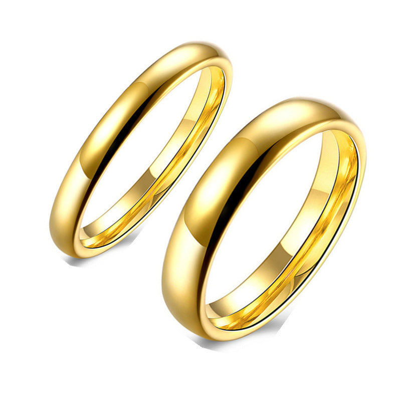 Couple Rings Titanium Steel Gold Circle Matching Rings For Him And Her Wedding Bands Jewelry Simple For Couple