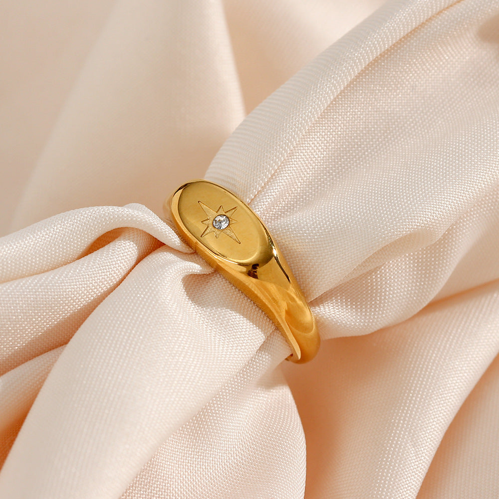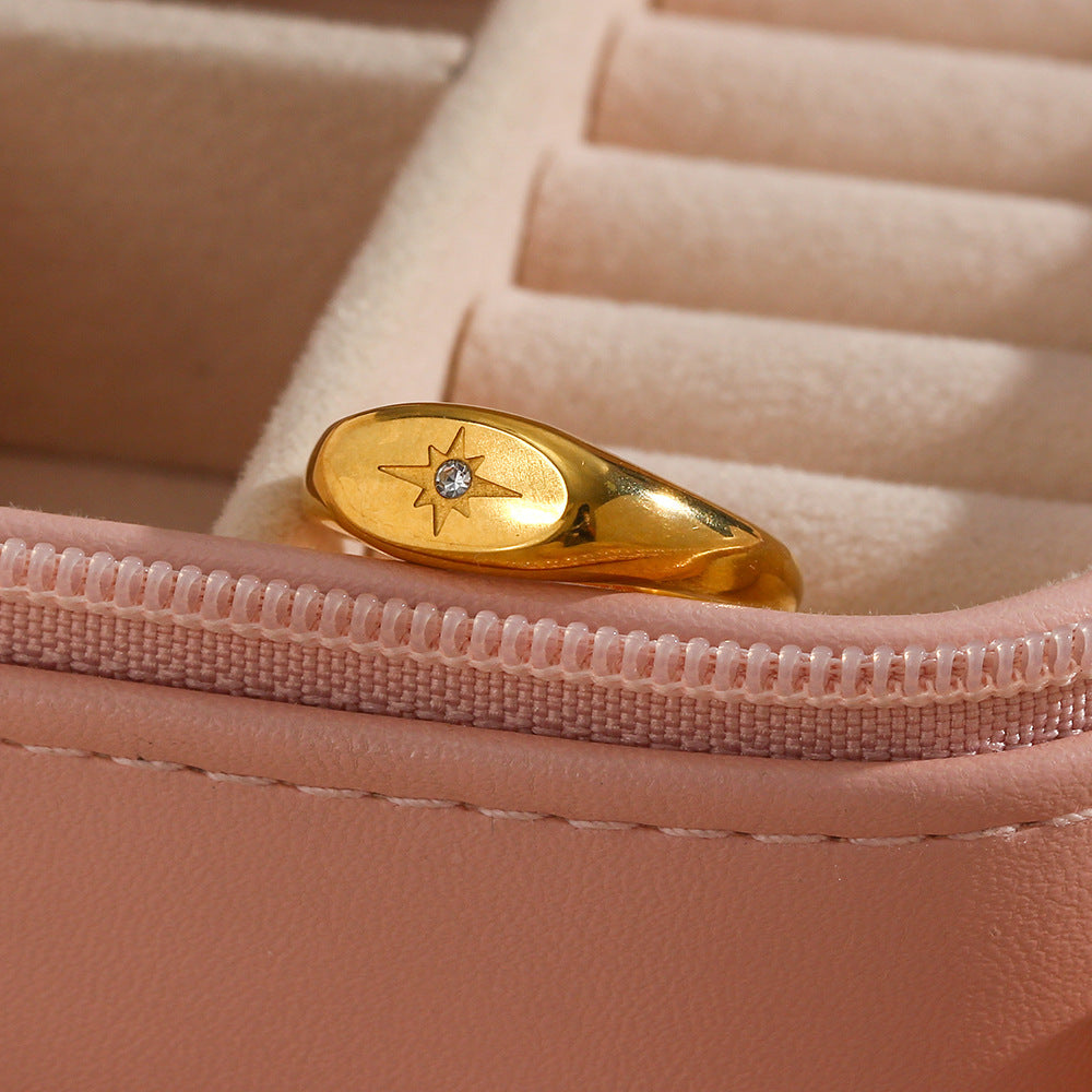 Stainless Steel Golden Oval Ring With Star Zircon Geometric Fashion Jewelry Statement Ring For Women Chic Look