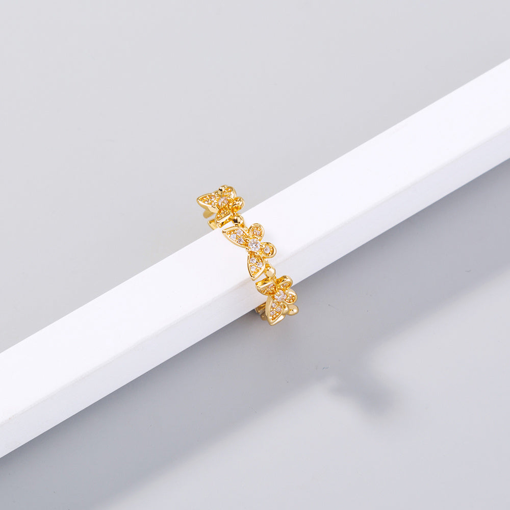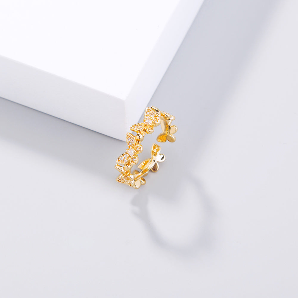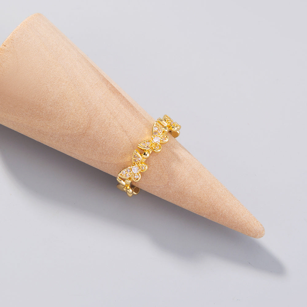 Adjustable Copper Butterfly Ring Gold Tone Trendy European American Style Band For Women And Girls Jewelry Pro