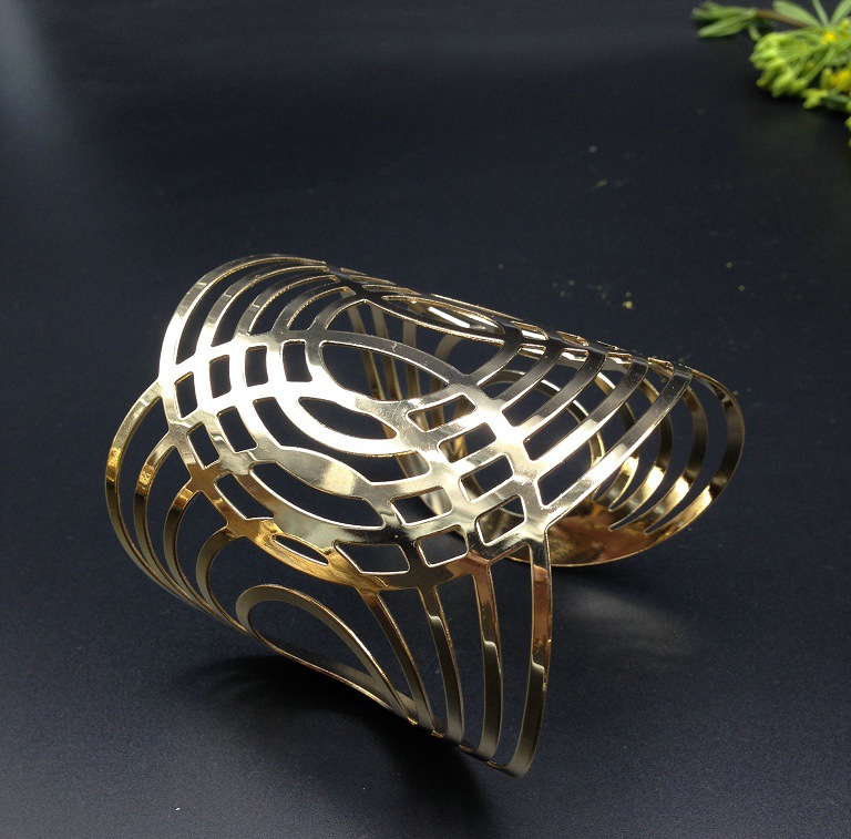 Geometric Hollow Half Circle Alloy Bracelet For Women