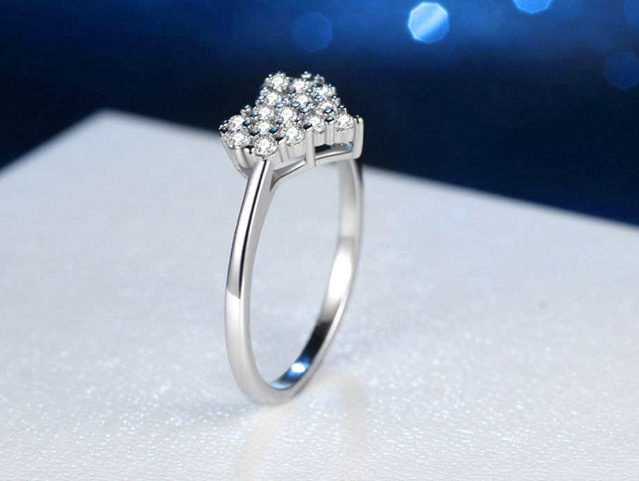 Womens Heart Shaped Ring Gold Plated Artificial Gemstone Inlaid Elegant Dainty Promise Engagement Anniversary Jewelry
