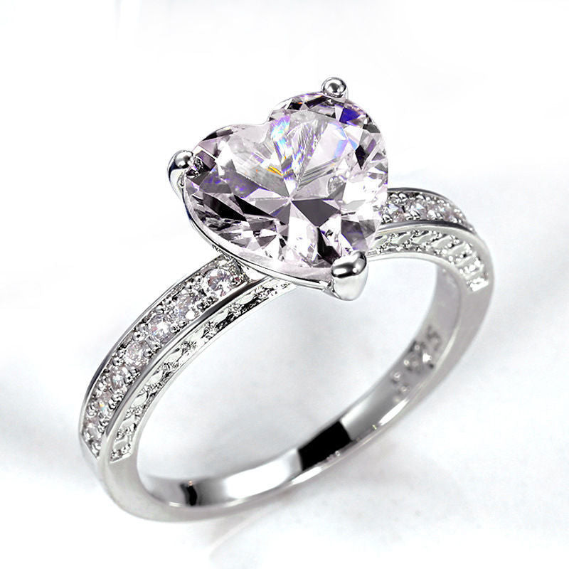Vintage Heart Ring Silver Plated Copper With Pink And White Gem Inlay And Bow Accent Heart Shaped Jewelry Ring