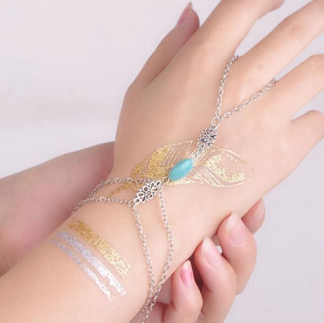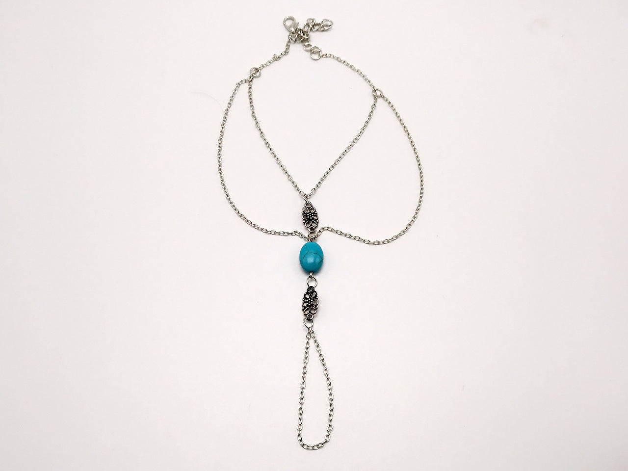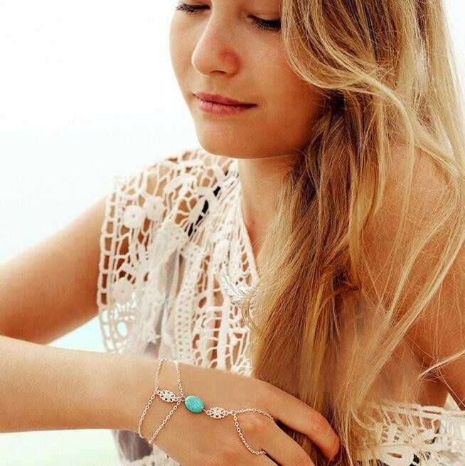 Turquoise Finger Bracelet Hollow Carved Alloy Gemstone Inlay Geometric Design Women Anniversary Gift Gift Idea