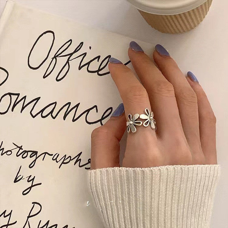 Women's Adjustable Open Ring With Daisy Flower Petal Design Electroplated Metal Jewelry For Index Finger Little Daisy