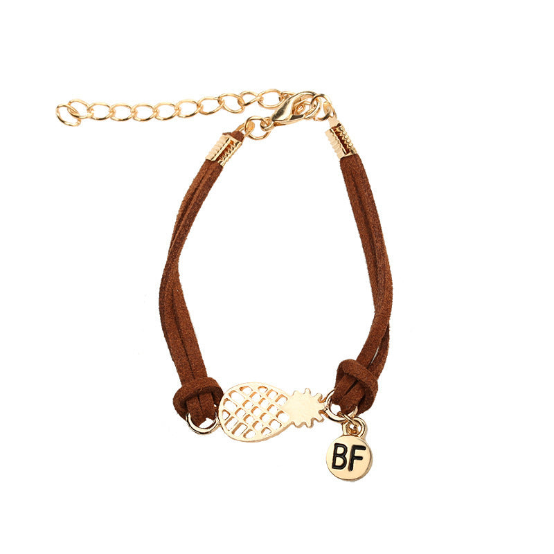 Double Pineapple Letter Bracelet Electroplate Alloy Anniversary Gift Travel Keepsake Elegant Jewelry Collector