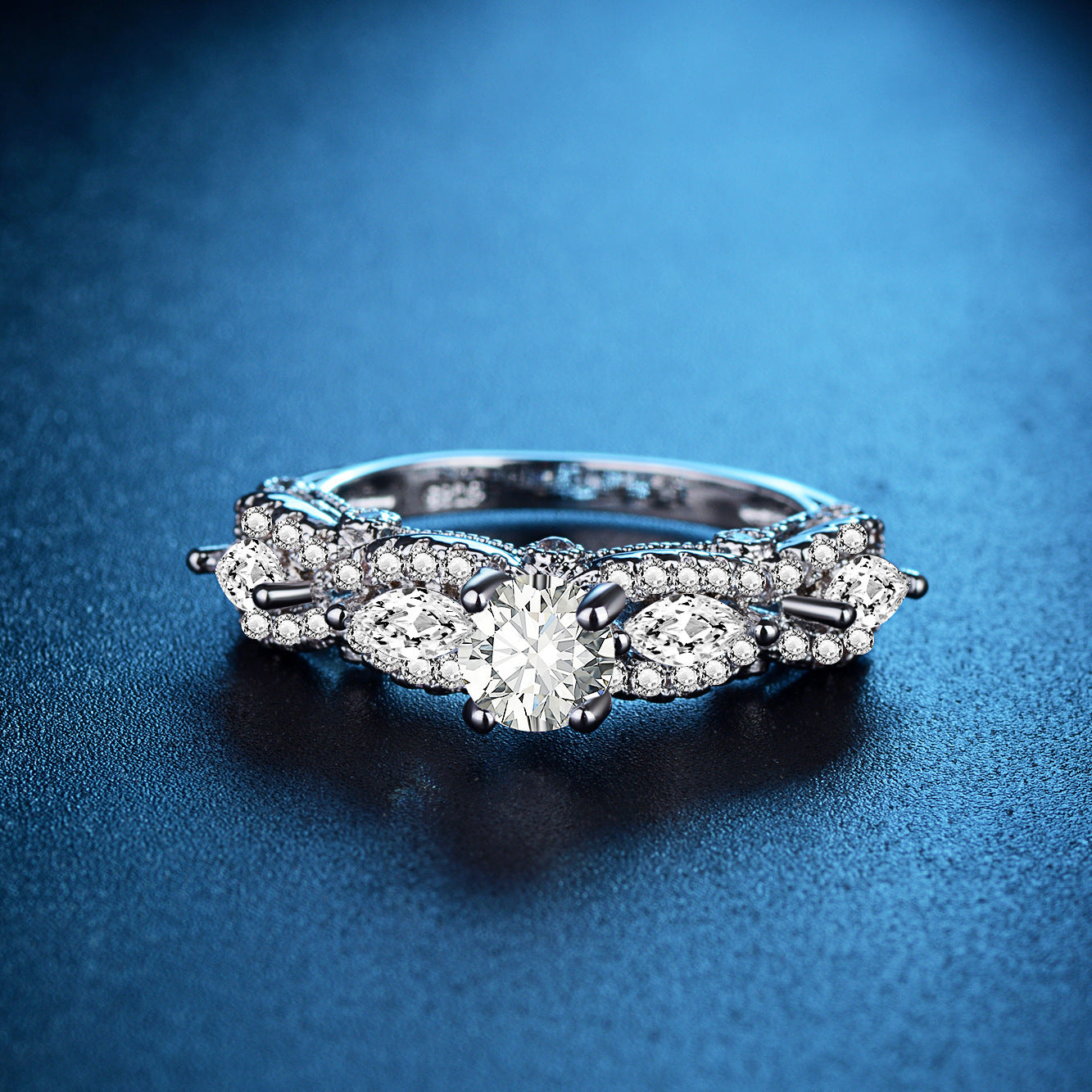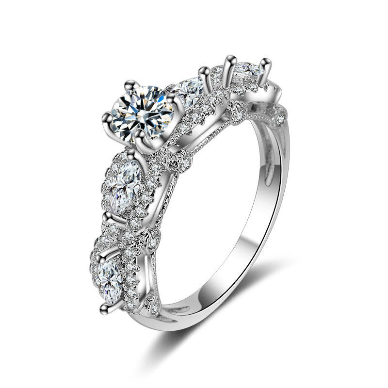 Zircon Flower Ring Gold Plated Copper Horse Eye Design Fashion Jewelry Elegant Dainty Statement Ring Sizes 6 7