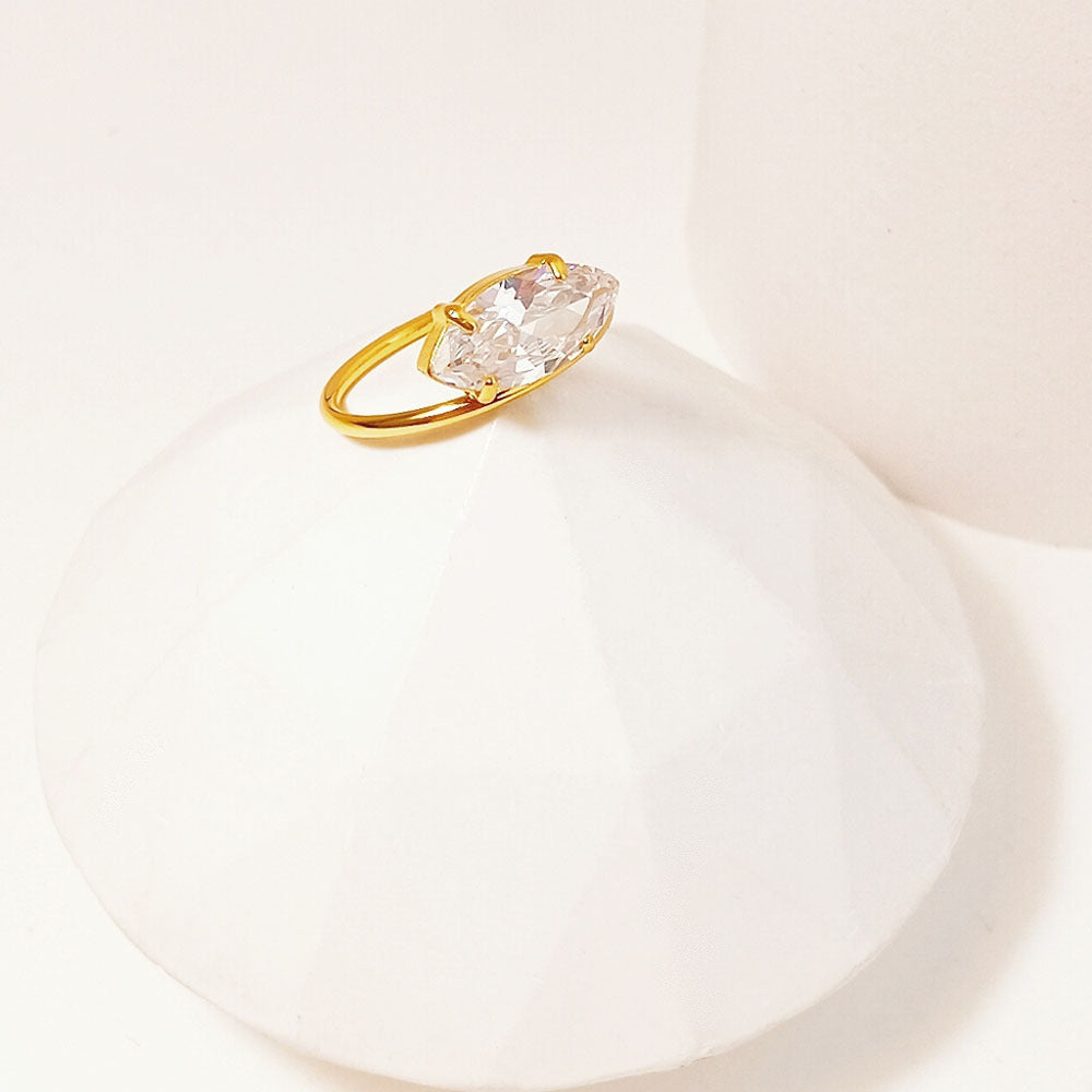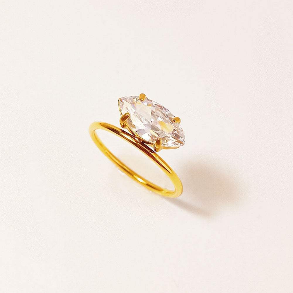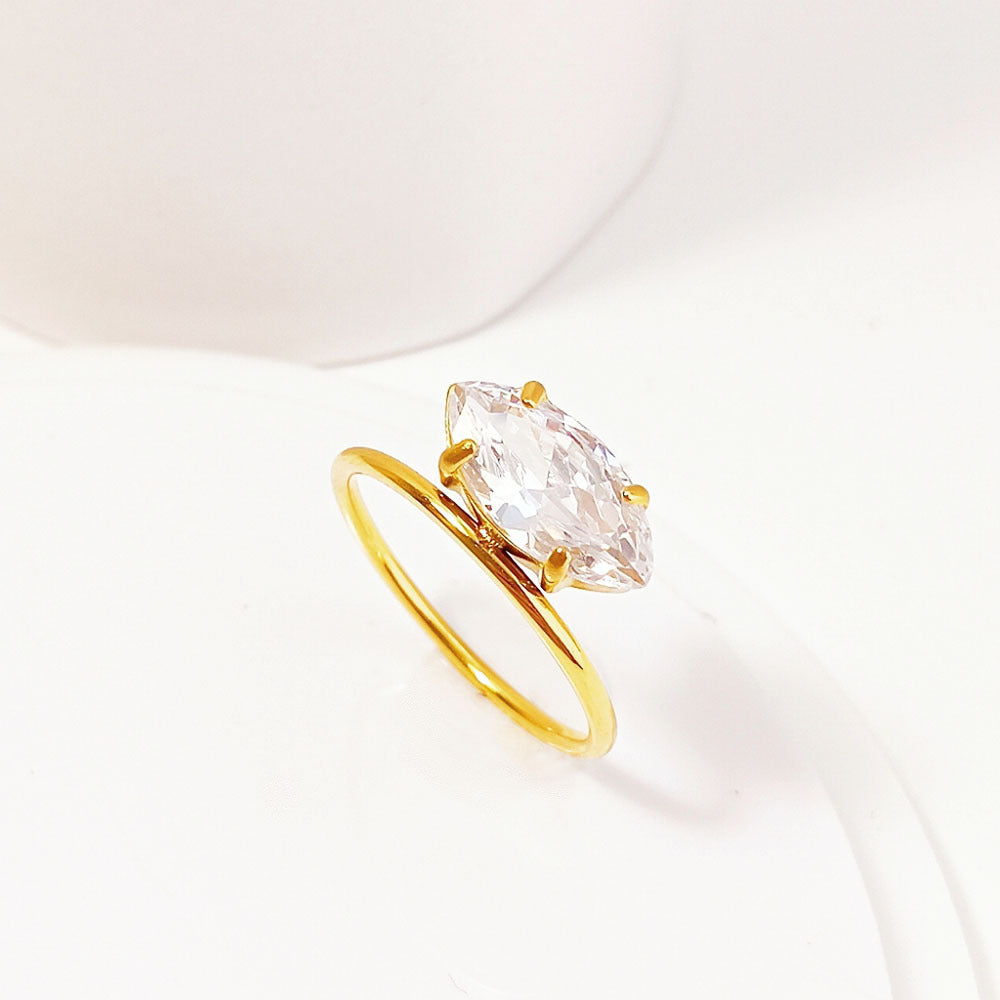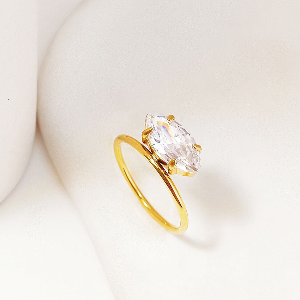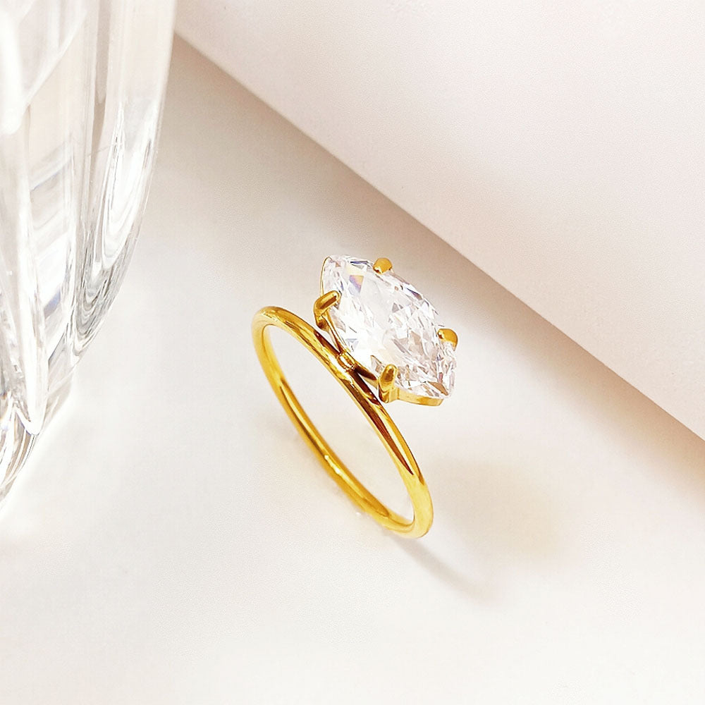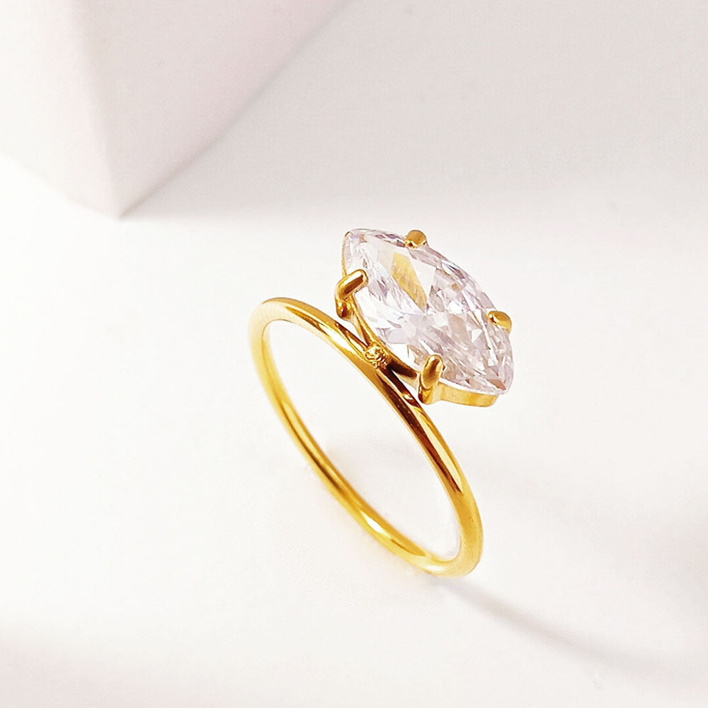 Womens Titanium Steel Horse Eye Ring Geometric Design Electroplated Goldtone Durable Fashion Accessory Sparkle
