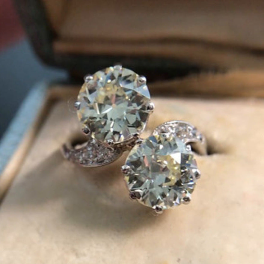 Womens Imitation Diamond Engagement Ring Copper Inlaid Gemstone Elegant Gift For Anniversary Proposal Crystal Shine
