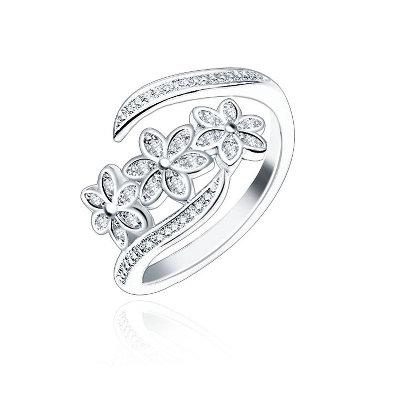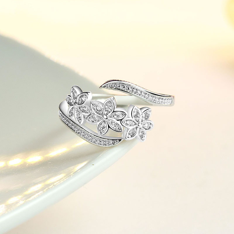 Women Index Finger Ring Gold Plated Diamond Flower Gemstone Adjustable Opening Elegant Korean Jewelry Floral Crystals