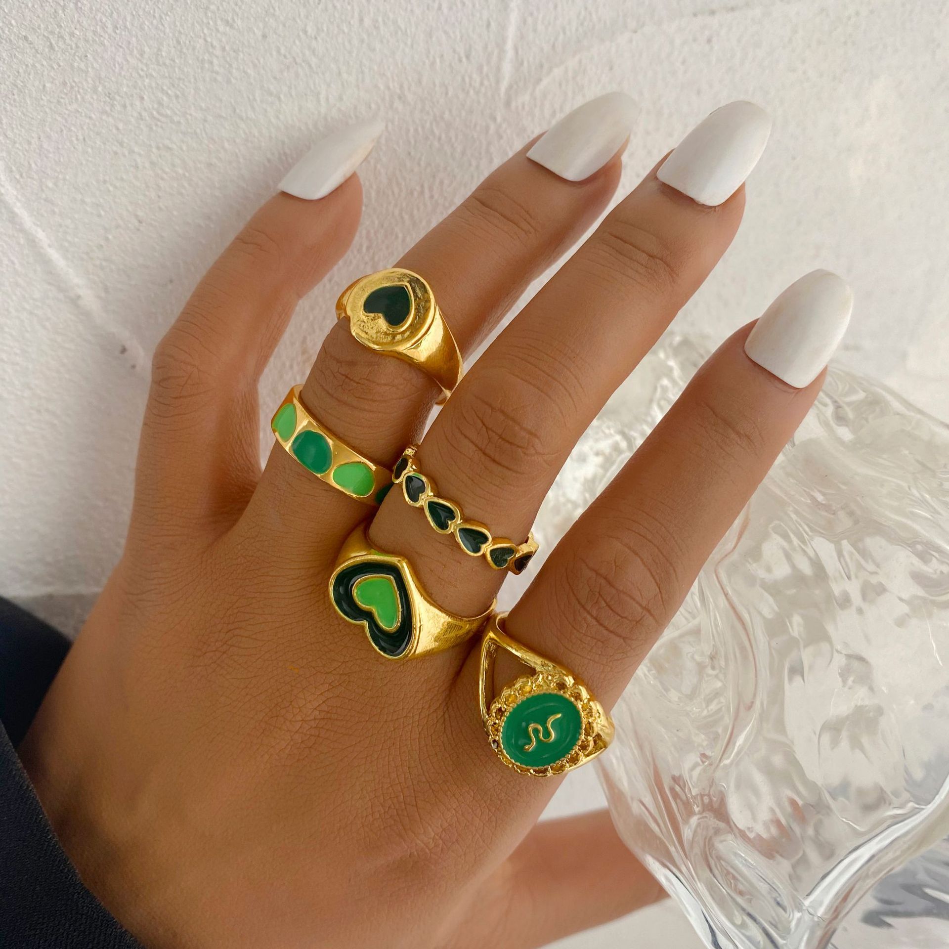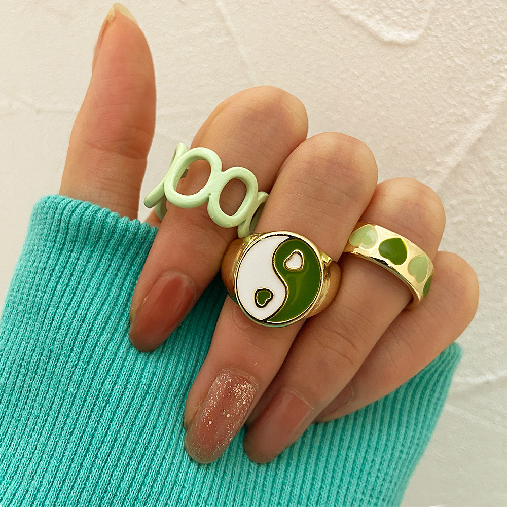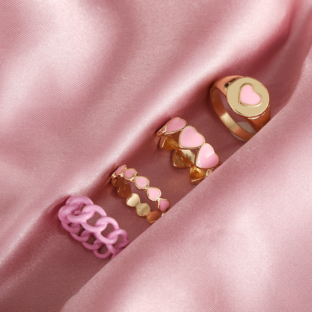 Unisex Peach Heart Ring Set With Rhinestones Dripping Oil Finish Alloy Jewelry For Women And Girls Trendy Accessory