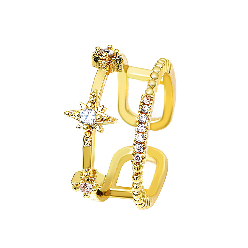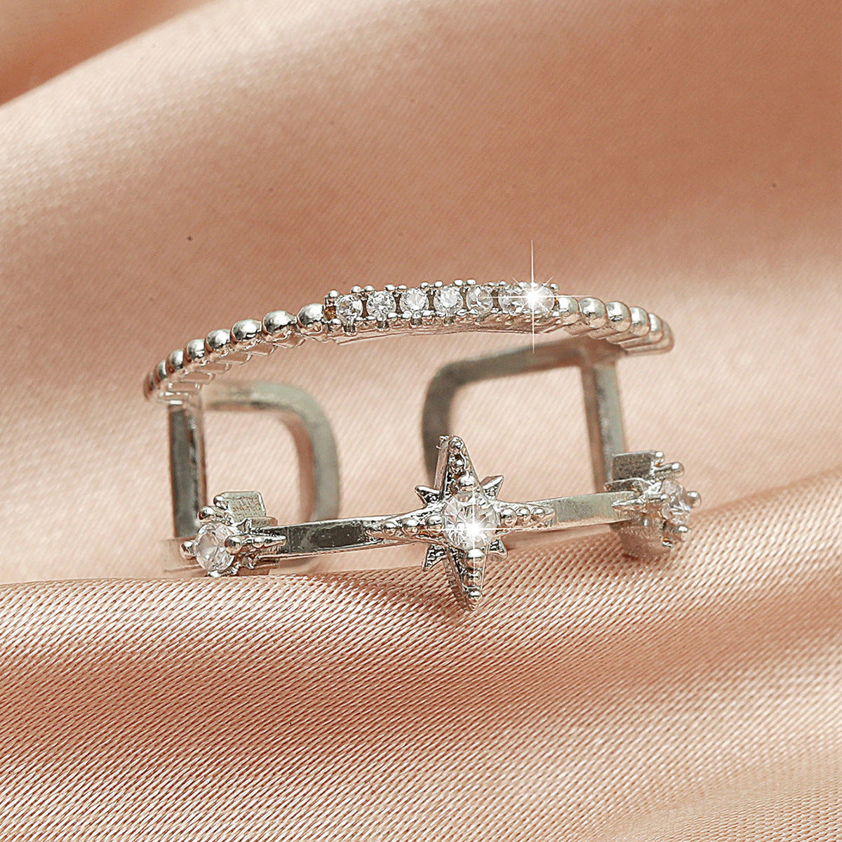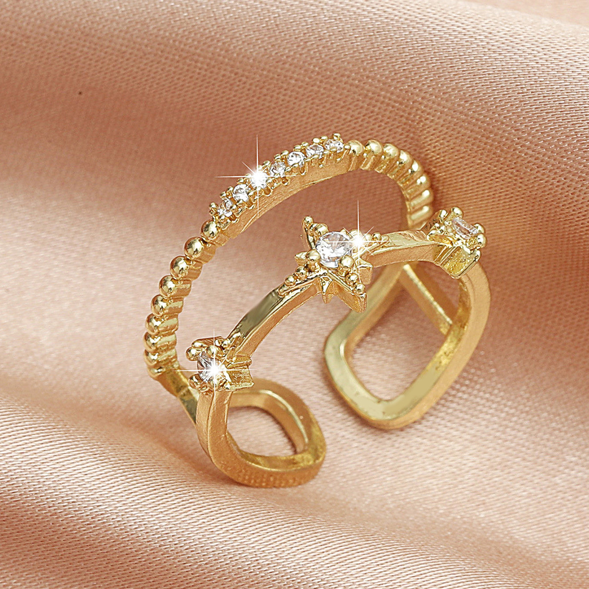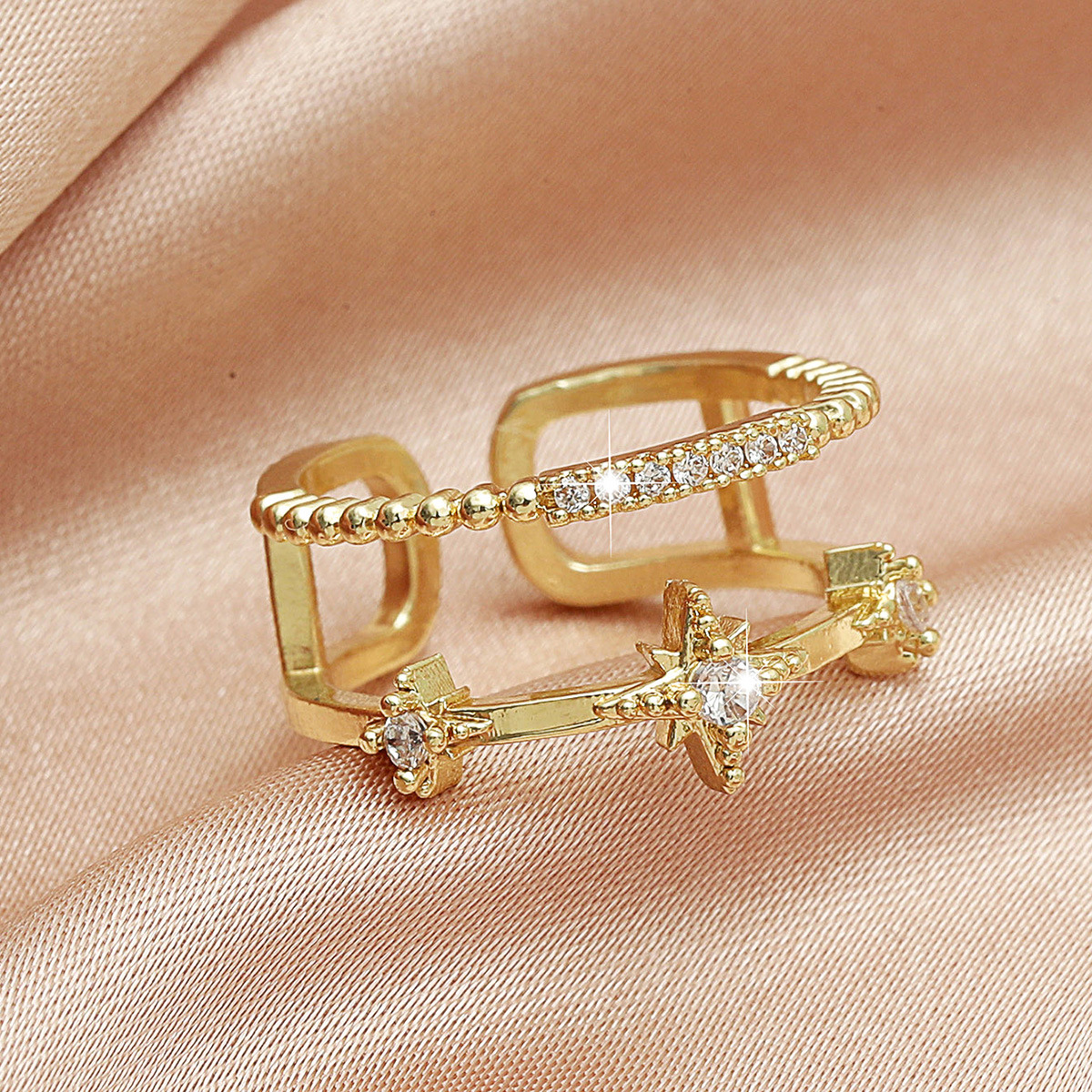 Womens Adjustable Open Ring Double Hexagram Korean Fashion Finger Ring Electroplated Copper Jewelry Gift Trendy