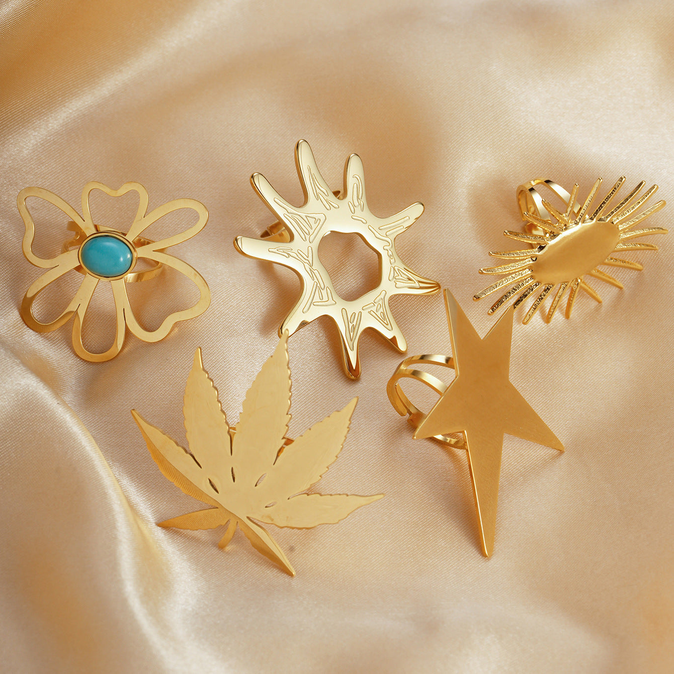 Stainless Steel Ring Retro Textured Geometric Irregular Five Pointed Star European American Design Jewelry For Women