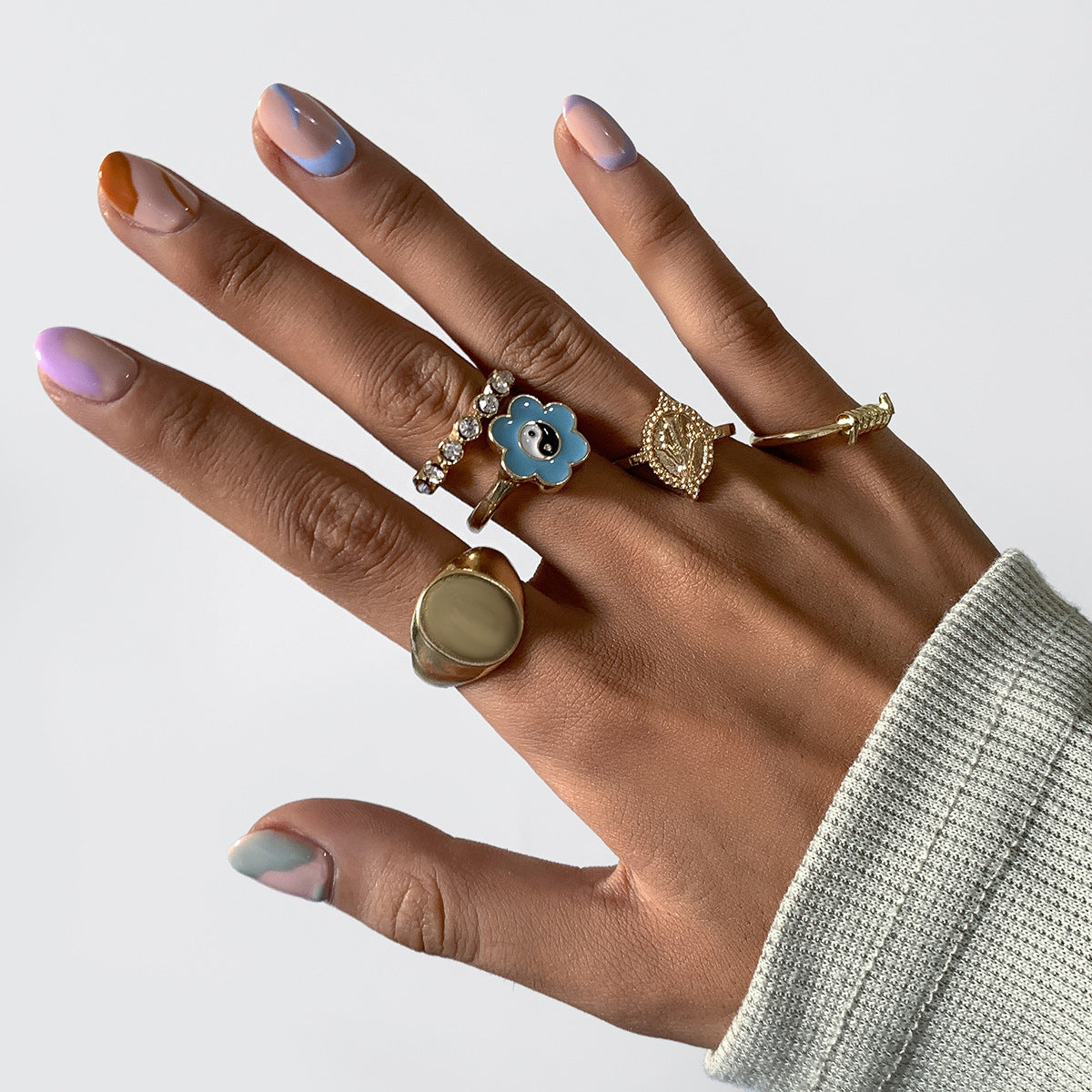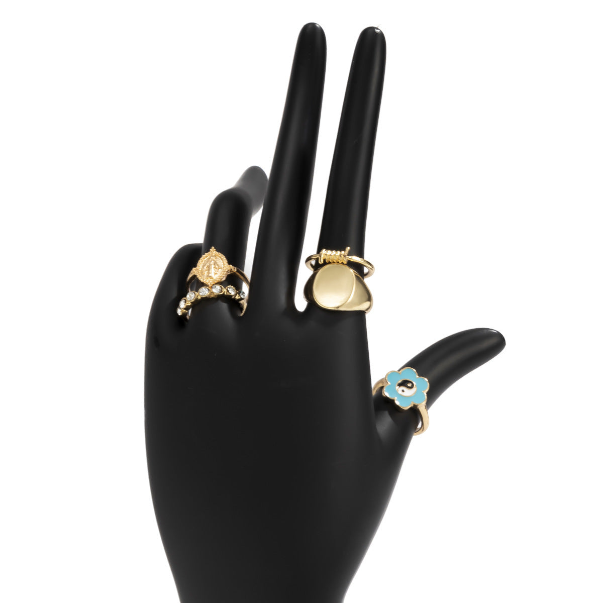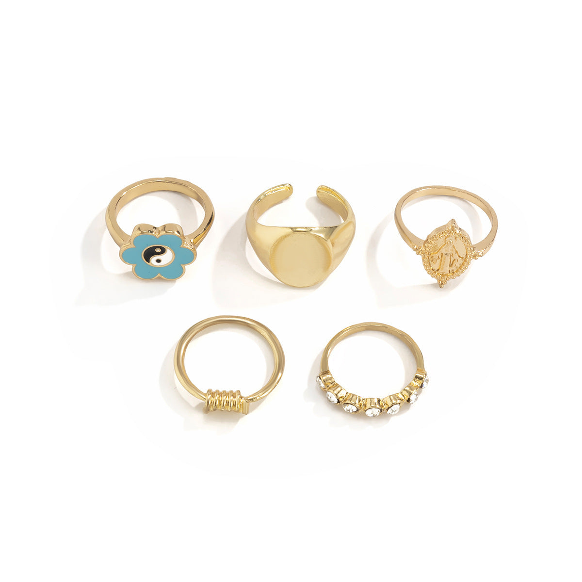 Vintage Rings With Rhinestone Accent Geometry Dripping Oil Effect Alloy Ring Exquisite Birthday Gift Ring Sets