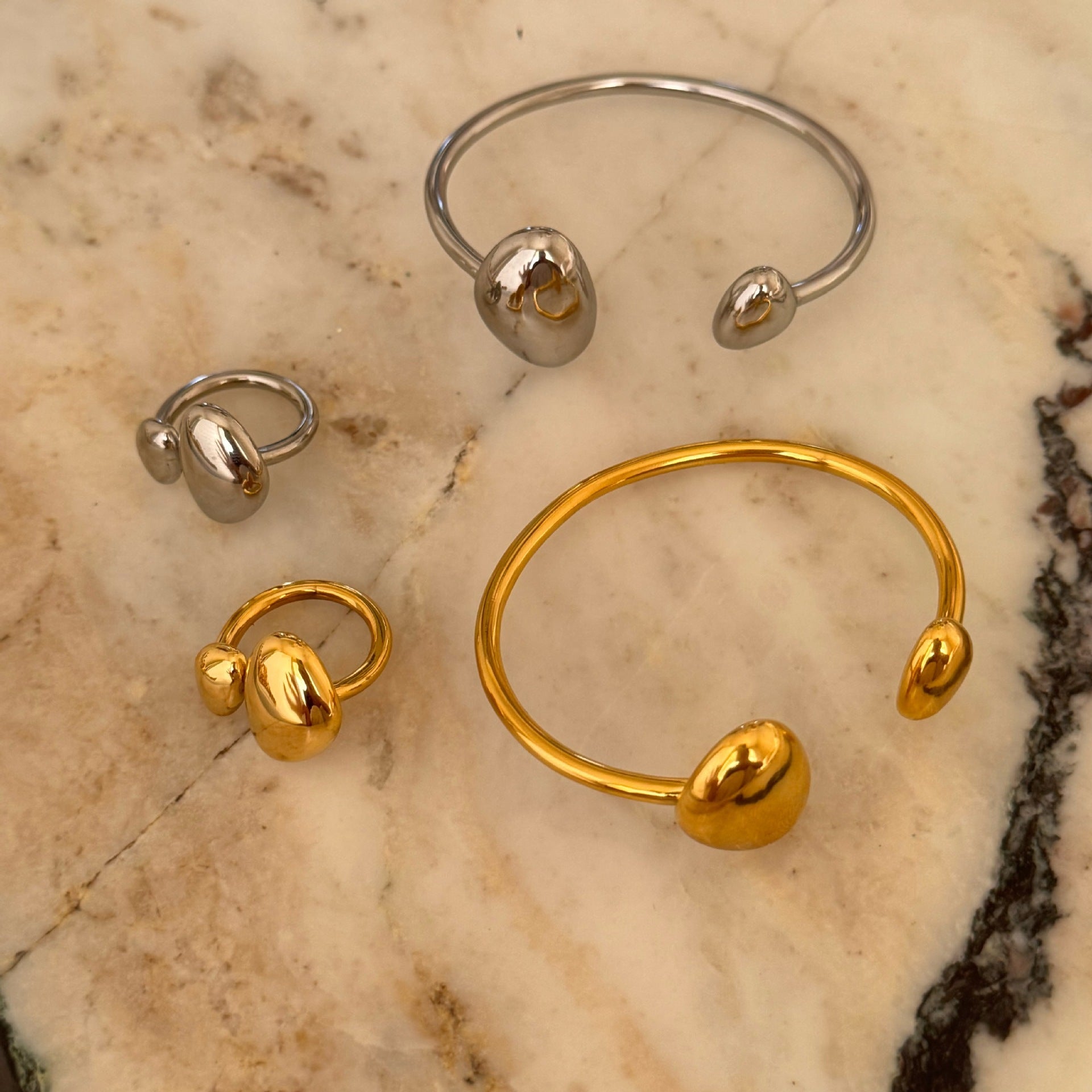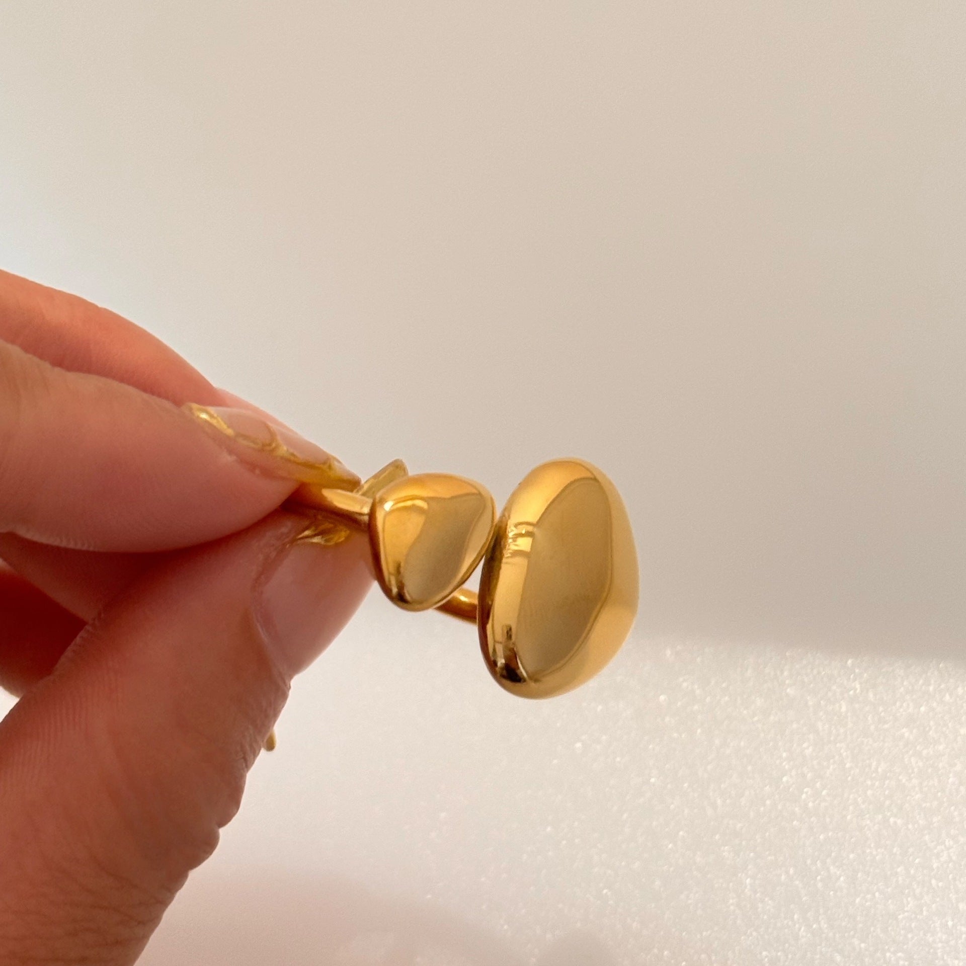 Womens Gold Plated Ring Titanium Steel Irregular Polished Open Band Heart Ring Adjustable Size Silver Glamorous
