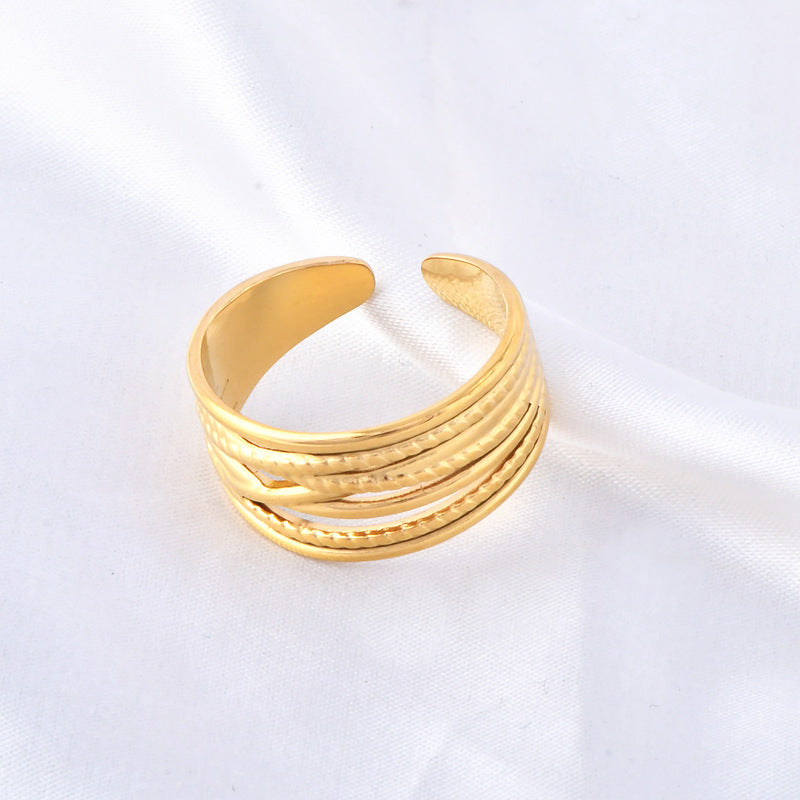 Womens Adjustable Titanium Steel Ring Gold Plated Irregular Geometric Design European Fashion Jewelry Statement Piece