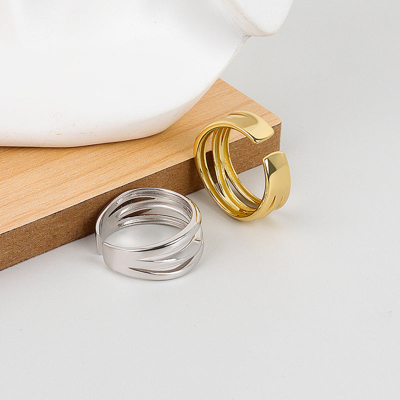 Geometric Adjustable Ring With Irregular Knotted Design Copper Electroplated Retro Fashion For Women Daily Wear
