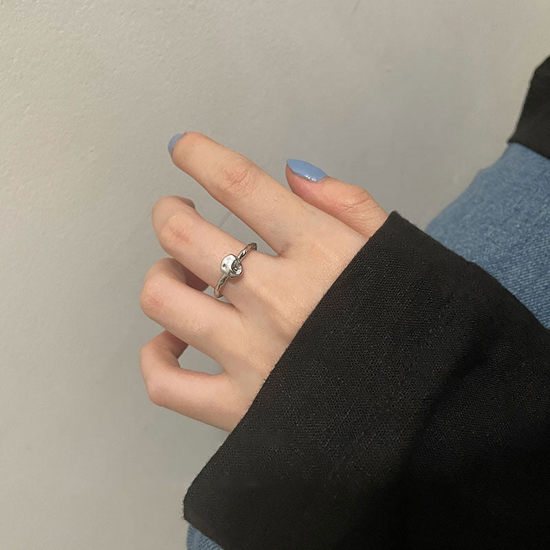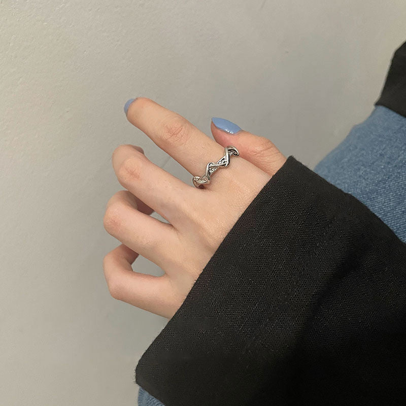 Copper Geometric Ring Set Open Adjustable Womens Rings Heart Design Irregular Texture Electroplated Everyday Wear