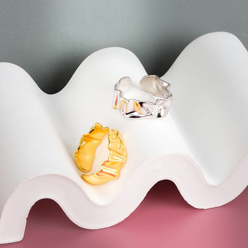 Womens Geometric Copper Ring Glossy Finish Irregular Bumps Electroplated Statement Jewelry Gift Idea For Style