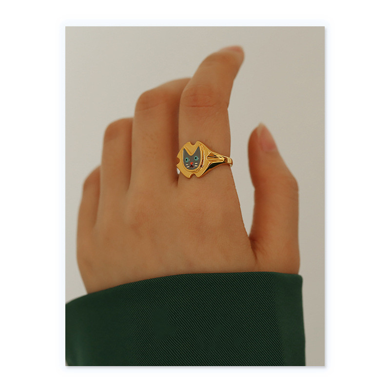 Womens Animal Zodiac Ring Brass Ring with Drip Oil Europe and America Ring Meow Bracelet All-match Ring Net Celebrity Ring Female Ring Jewelry