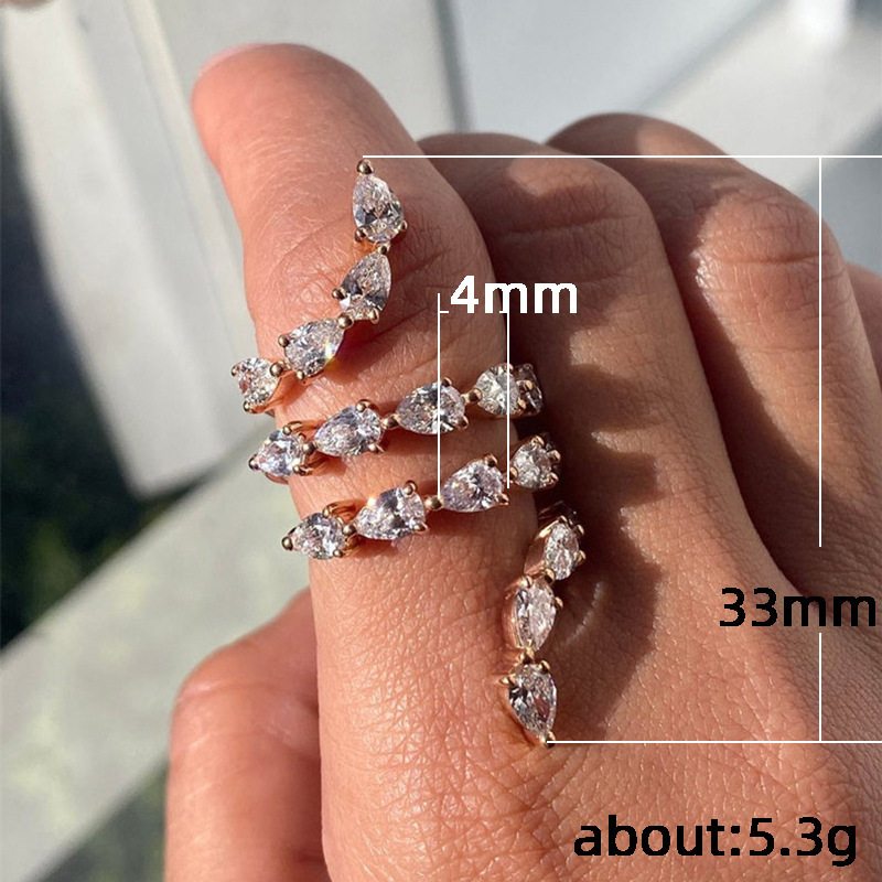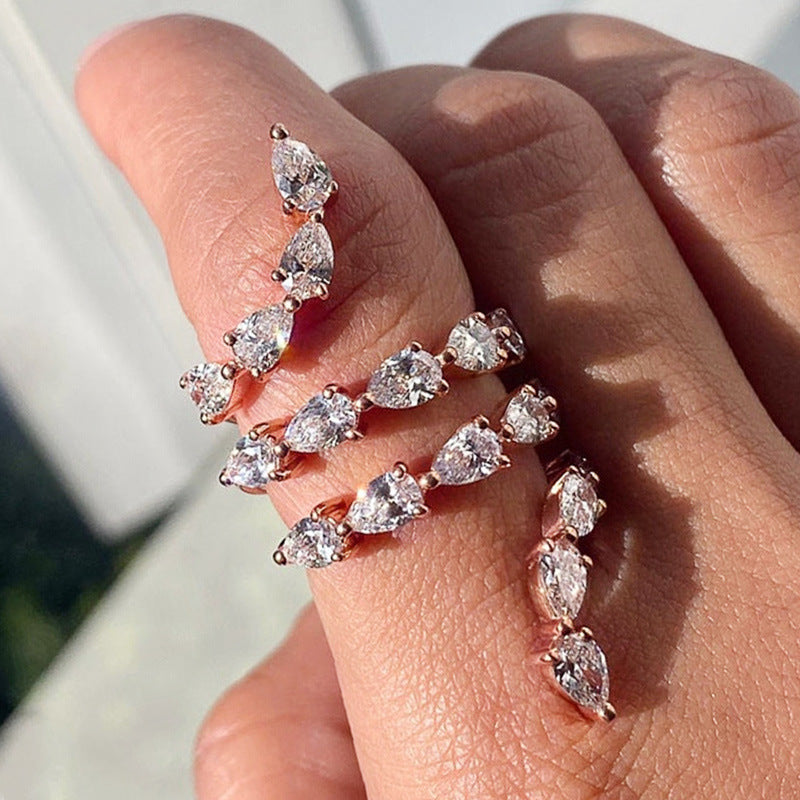 Women's Zircon Inlaid Ring Adjustable Rose Gold Copper Geometric Design Fashion Trendy Jewelry Durable Gift