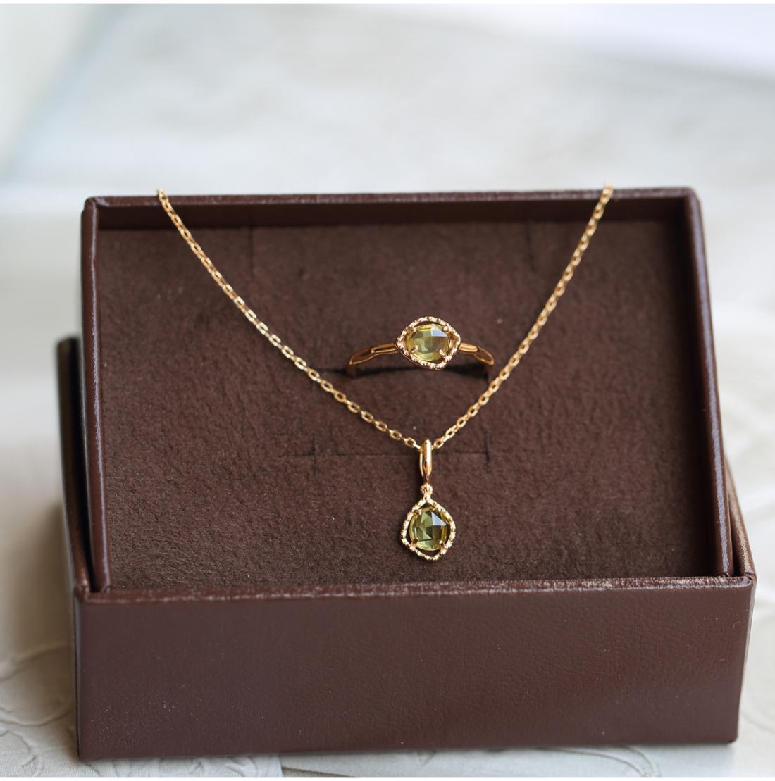 Womens Imitation Peridot Ring Adjustable Copper Geometric Retro Japanese Inspired Elegant Durable Jewelry Fine Craft