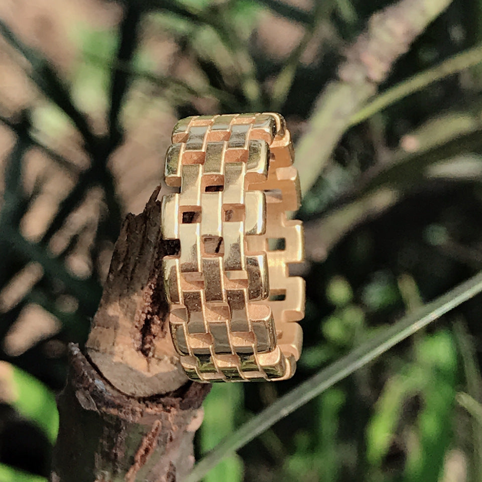 Unisex Titanium Steel Chain Ring Hollow Geometric Design Stainless Steel Band Jewelry Black Satin Finish Looks
