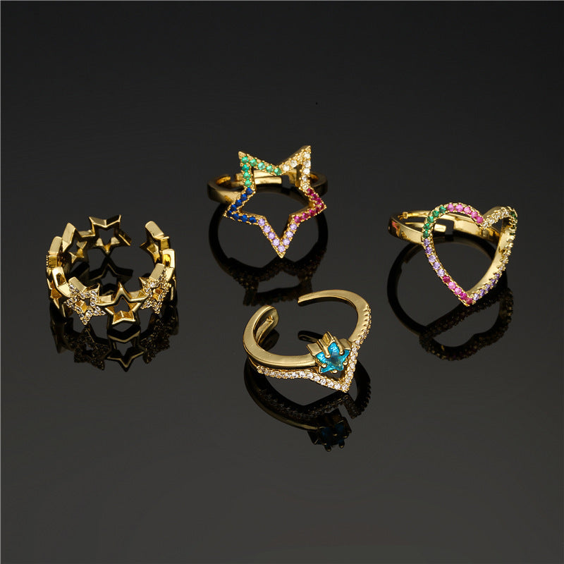 Womens Gold Electroplated Copper Ring With Micro Inlay Geometric Design Adjustable Jewelry Elegant Accessories