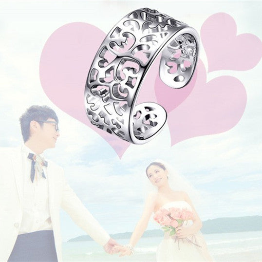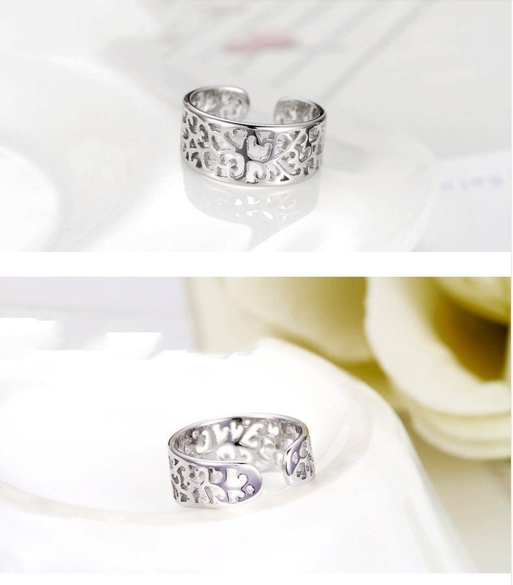 Womens Heart Ring Natural Carved Tail Silver 800 White Copper Jewelry Gift For Her Handcrafted Design Gift Gem