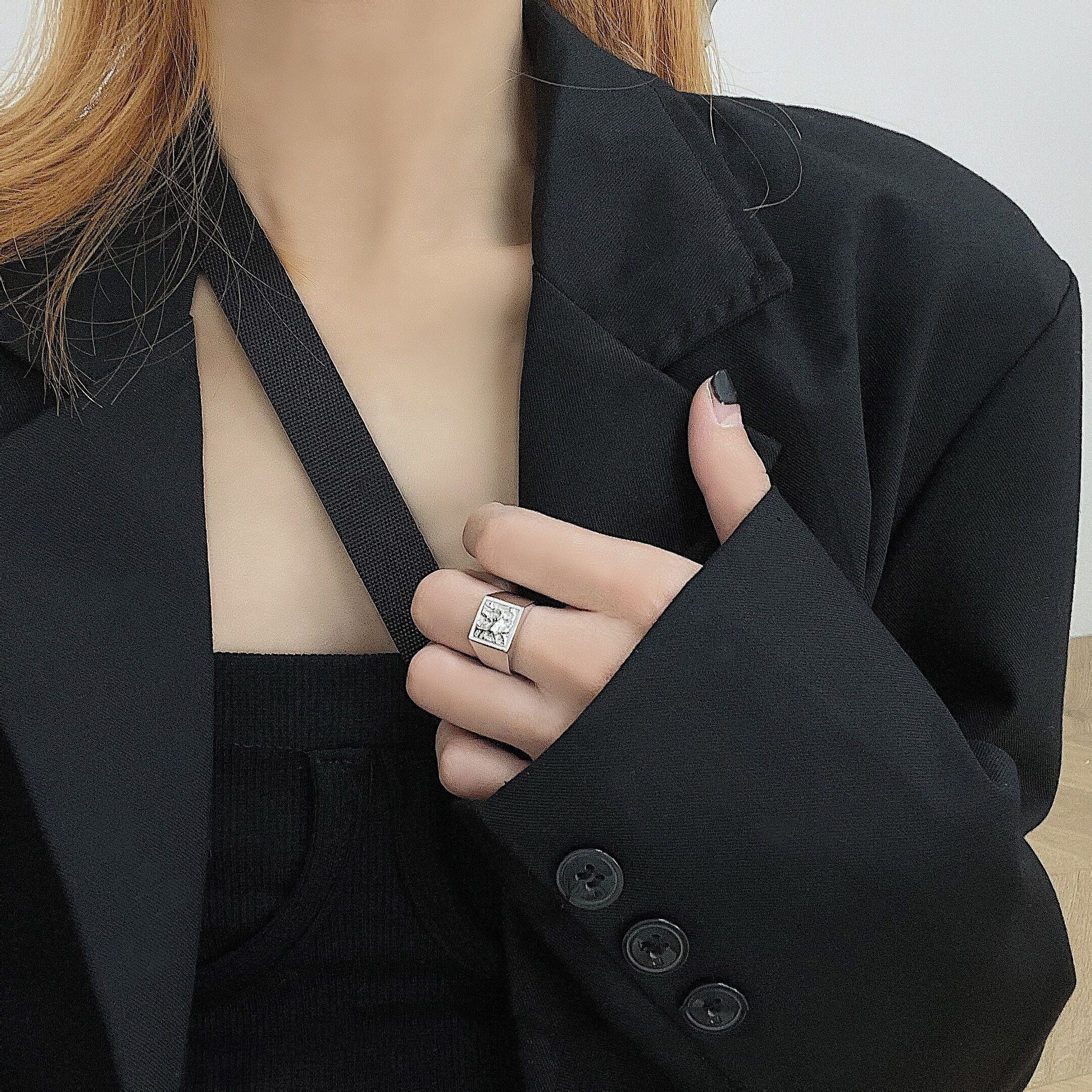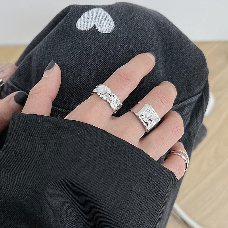 Thai Silver S925 Womens Ring Geometric Irregular Lava Design Korean Style Silver Ring For Daily Wear And Style