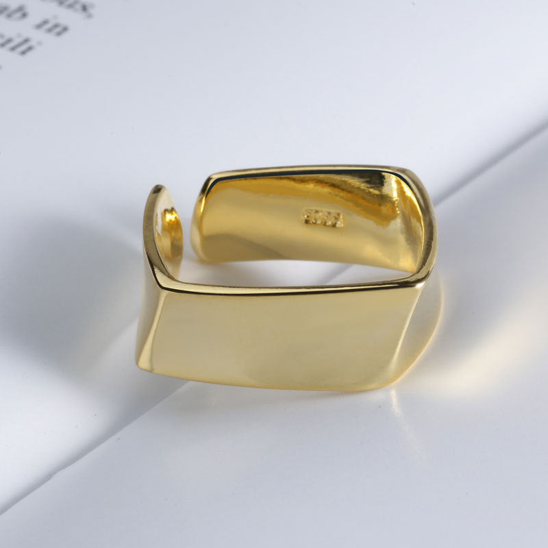 Geometric Square Ring Adjustable Opening Copper Fashion Jewelry Gold Finish Or Platinum Gold Finish Rings Ring