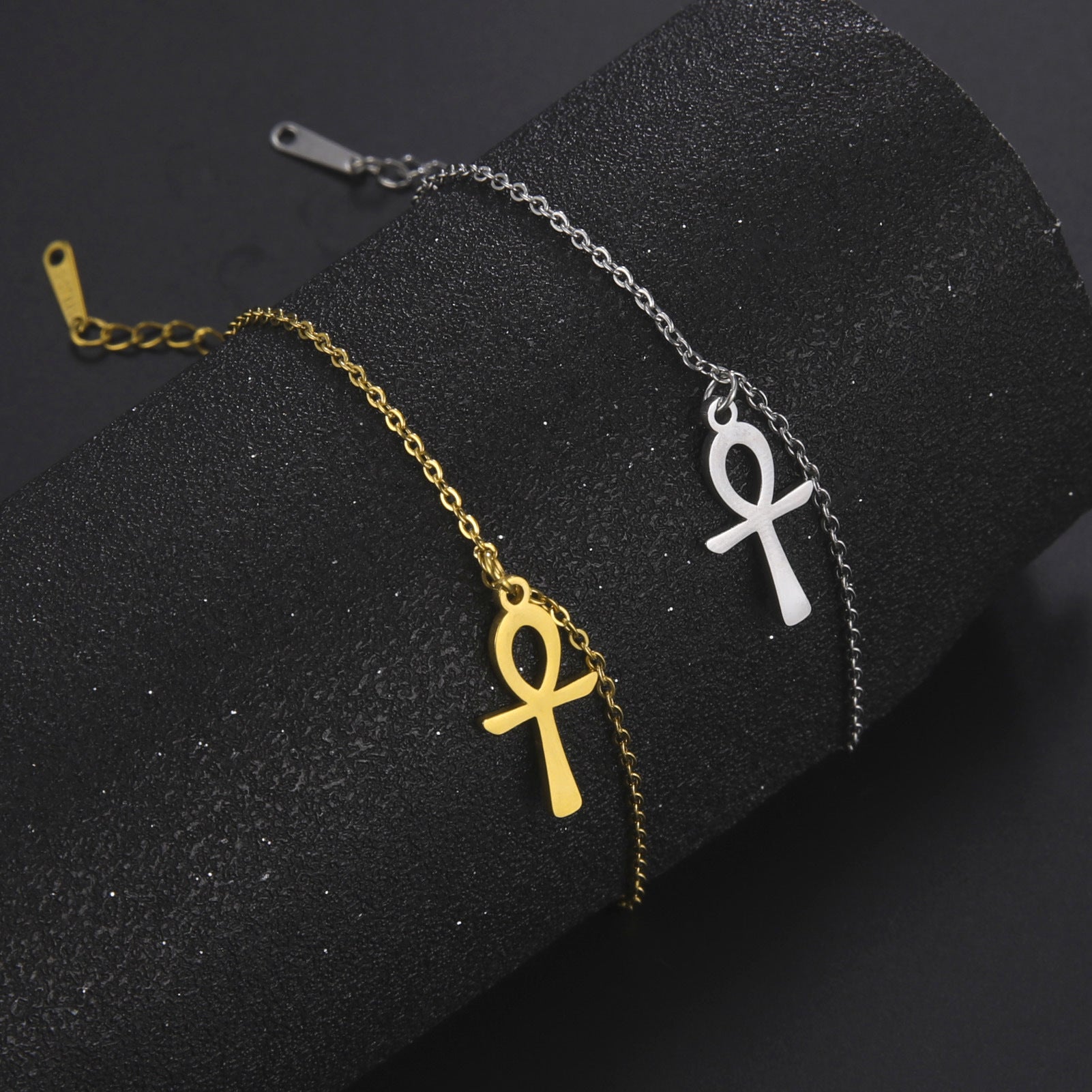 Womens Stainless Steel Cross Bracelet Simple Chic Religious Jewelry Cross Charm Bracelet Gold Or Steel Finish Everyday
