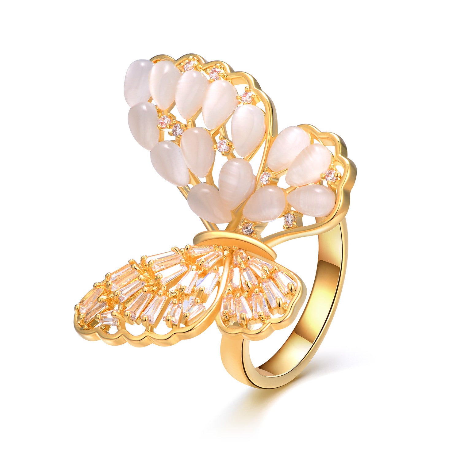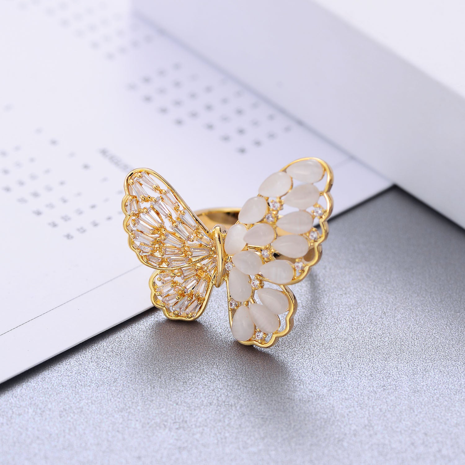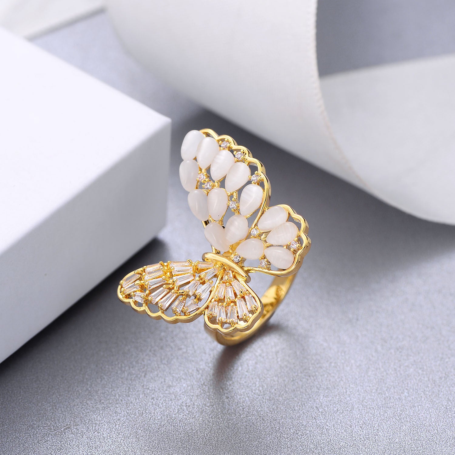 Women's Butterfly Ring with Zircon Inlay Golden Korean Fashion Ring Trendy Statement Ring Individually Packed Jewelry Gift for Her Elegant Ring