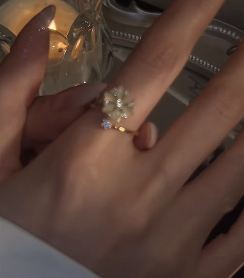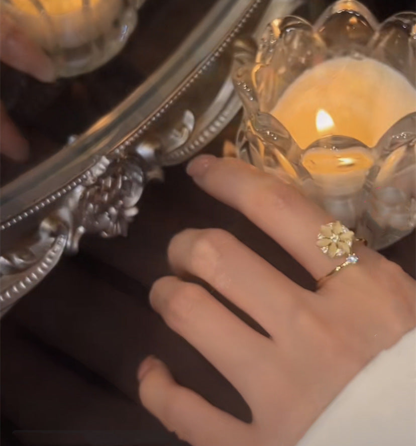 Women Opal Spinning Flower Ring Copper Zircon Accented Rotating Design Adjustable Finger Jewelry For Her Gifts