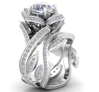 Womens Rose Zircon Floral Ring Copper Silver Plated Artificial Gemstone Inlay Elegant Fashion Jewelry Chic Gift