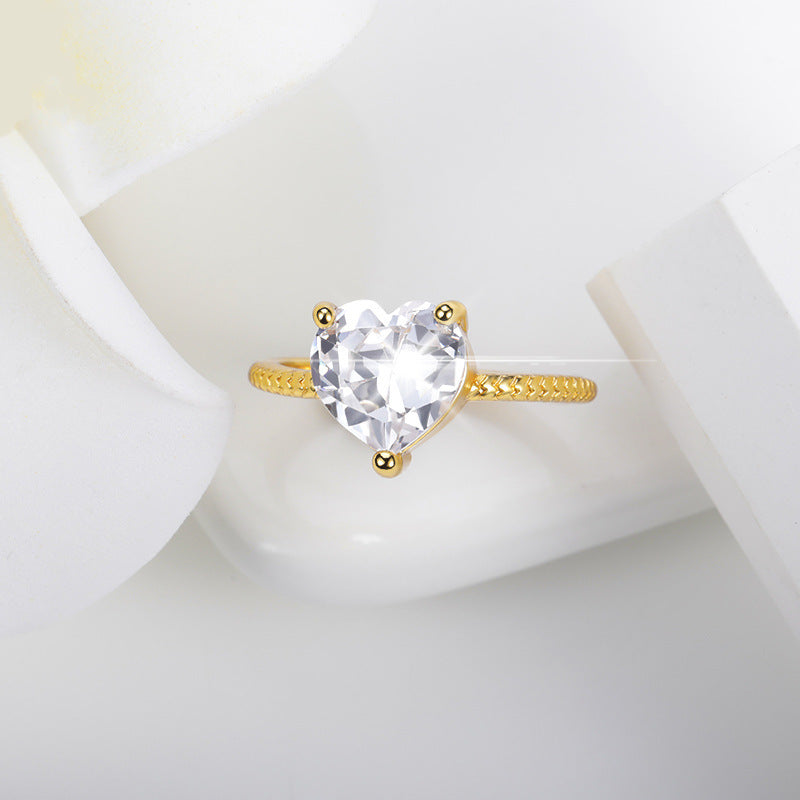 Womens Heart Ring With Zircon Accent Copper Ring For Women Heart Shaped European And American Ring Metal Shine
