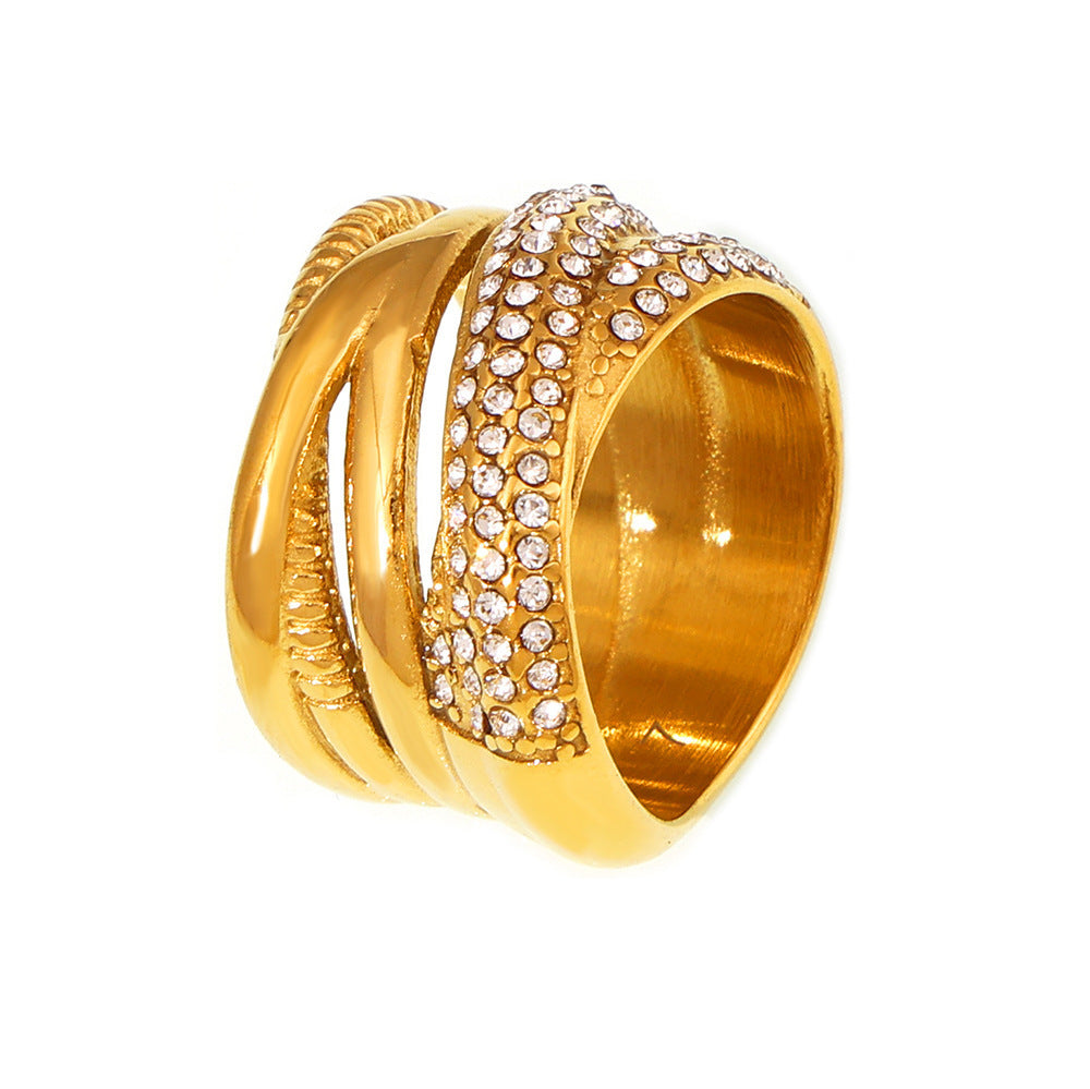 Womens Cross Woven Band Diamond Ring Titanium Steel Geometric Fashion Jewelry Electroplated Elegant Chic Style