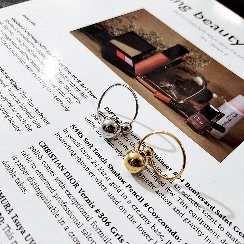 Open Mouth Geometric Titanium Steel Ring With Double Ball And Split Three Ball Design For Fashion Jewelry Chic
