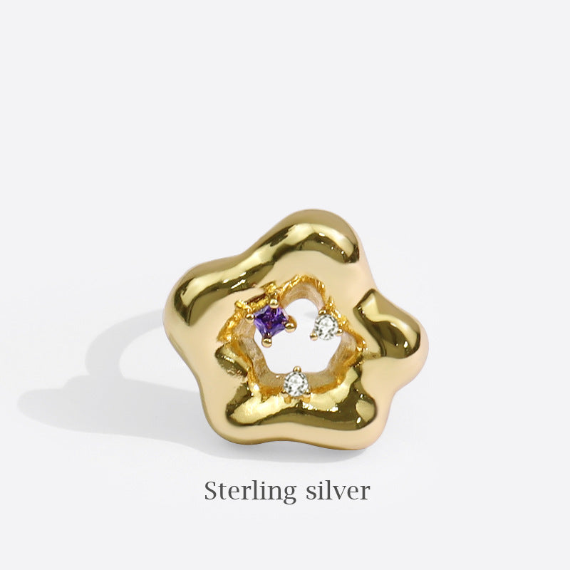 Womens Adjustable Silver Plated Five Pointed Star Ring Geometric Design Diamond Studded Fashion Ring Elegant Accessory