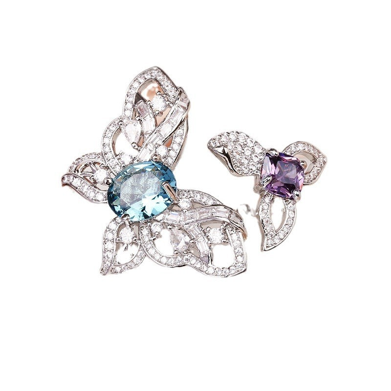 Womens Ring With Rhinestone Butterfly In Heart Design Adjustable Opening Copper Geometric Sky Jewelry For Her