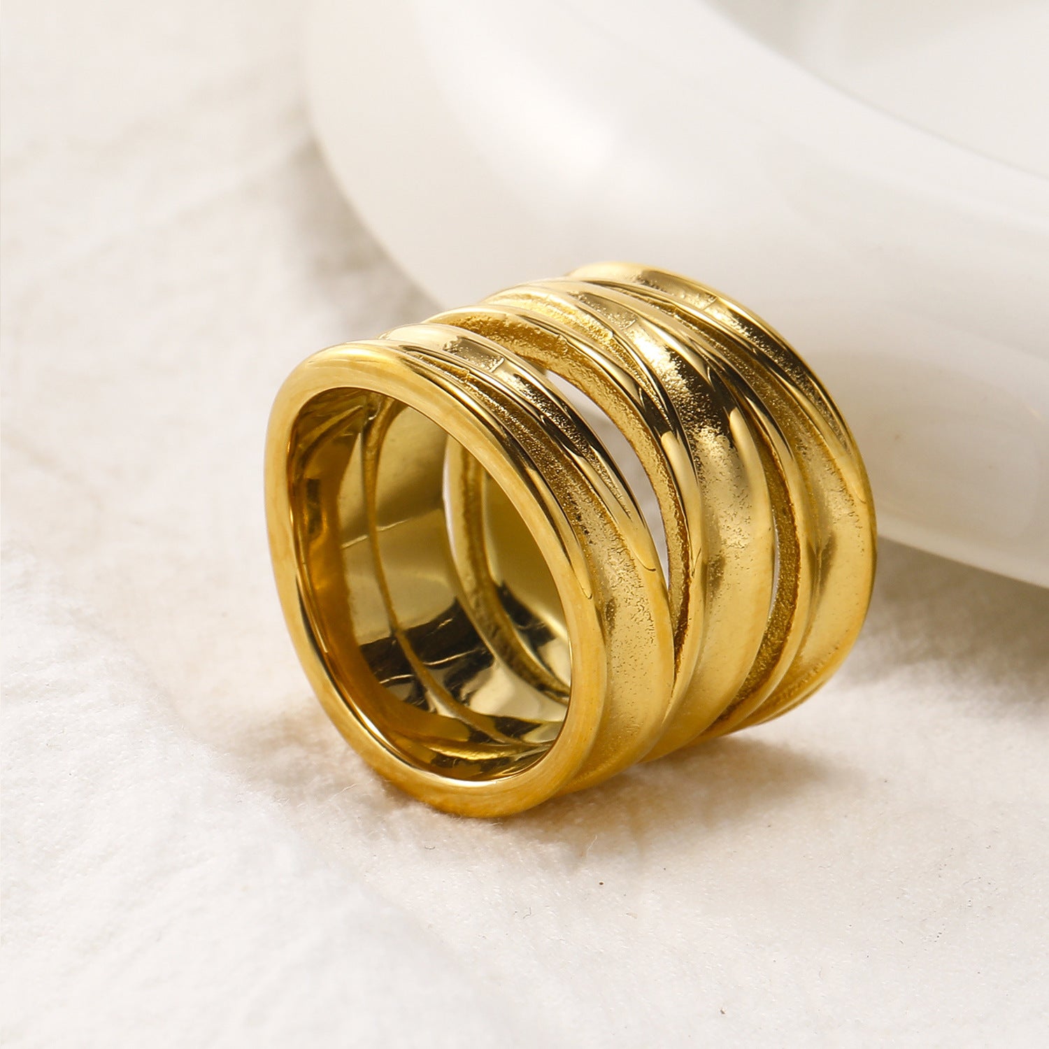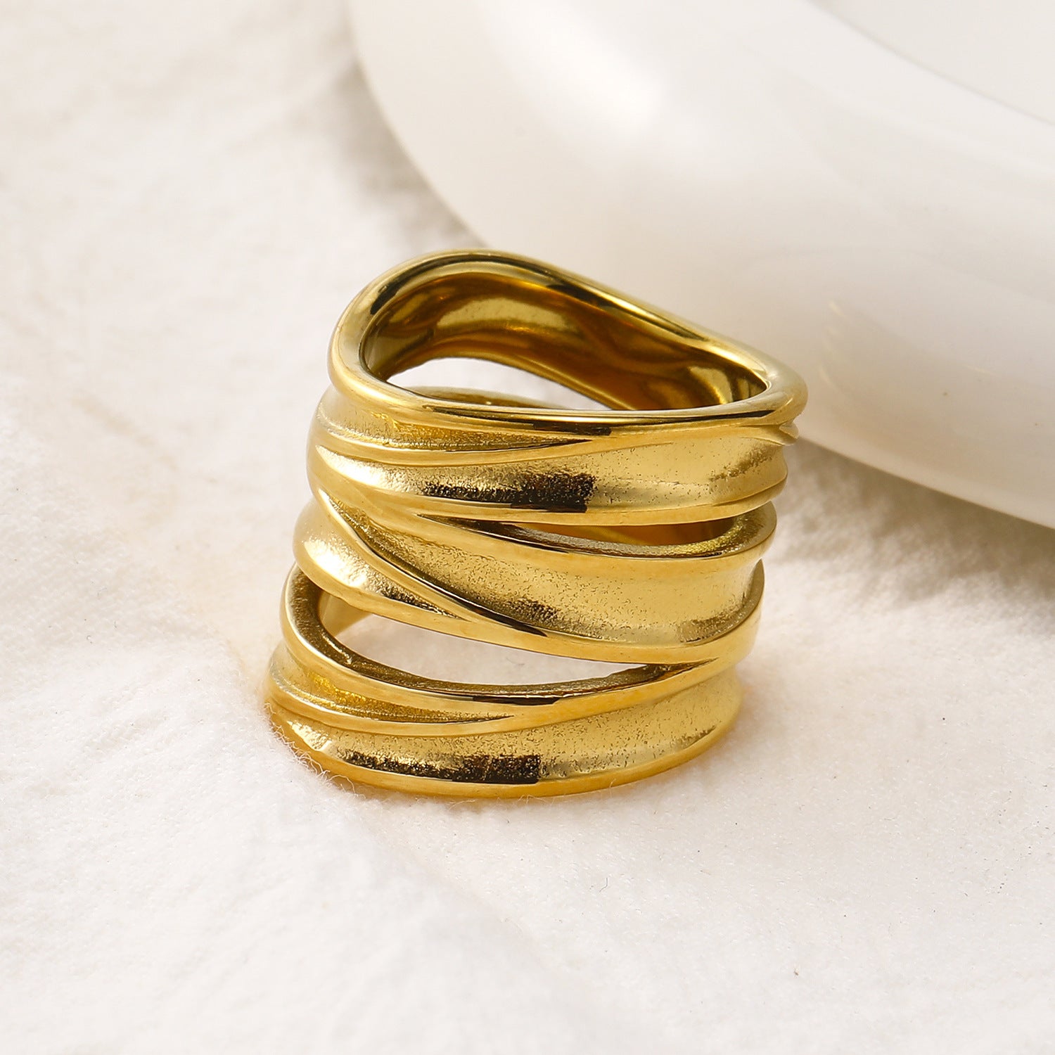 Womens Layer Line Ring Titanium Steel Electroplated Irregular Fashion Jewelry Gold Finish Size 6 7 8 Gift Style