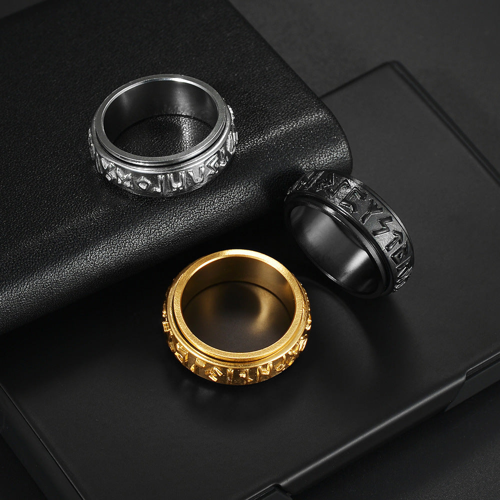 Women Stainless Steel Rune Ring Electroplated Minimalist Fashion Ring Turning Decompression Style Gift Timeless