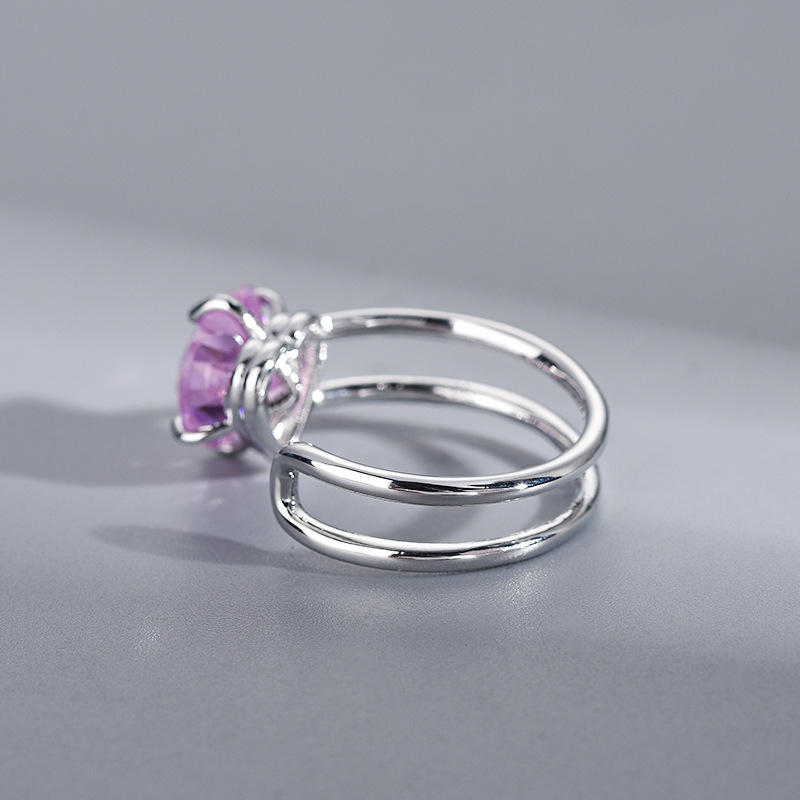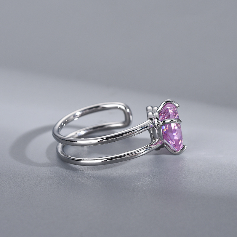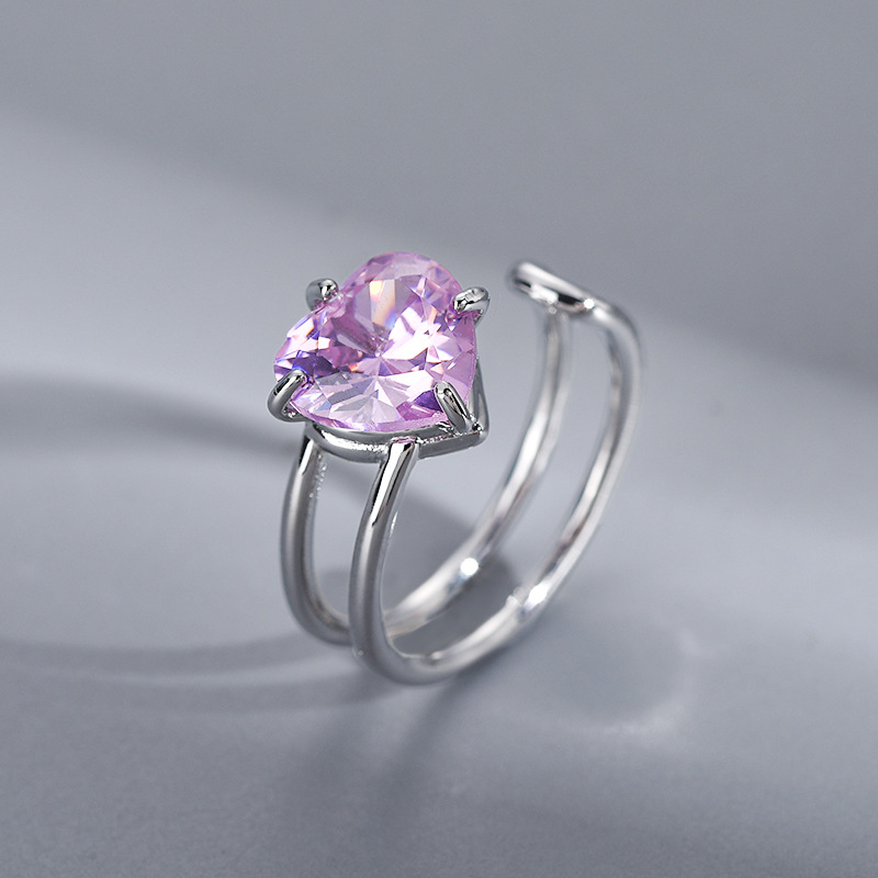 Women Heart Ring Adjustable Opening White Gold Plated Copper With Zircon Elegant Heart Shaped Jewelry Sparkles