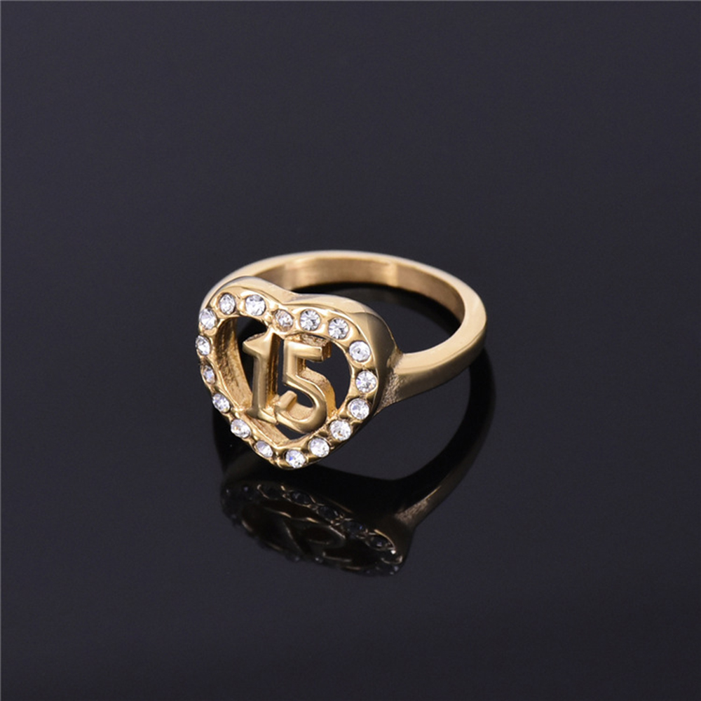 Womens Love Heart Ring Number 15 Gold Titanium Steel Ring Heart Shaped Ring for Women Anniversary Gift Number Ring Fashion Jewelry