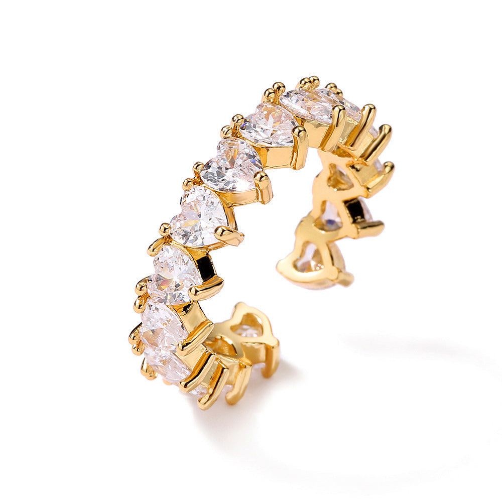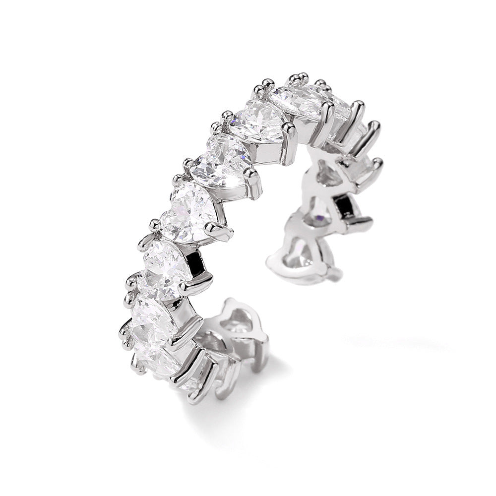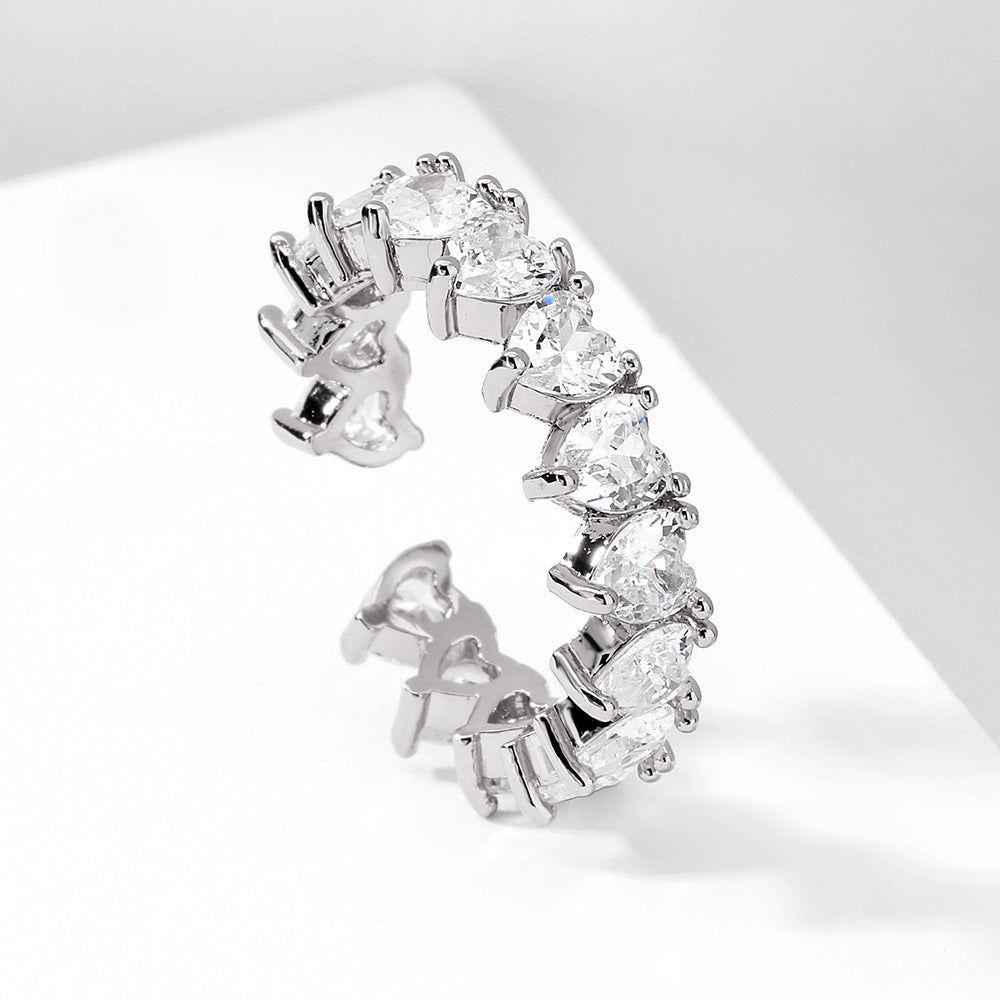 Zircon Open End Ring For Women Adjustable Heart Shape Copper Plated Dainty Jewelry Gift Accessory Delicate Design