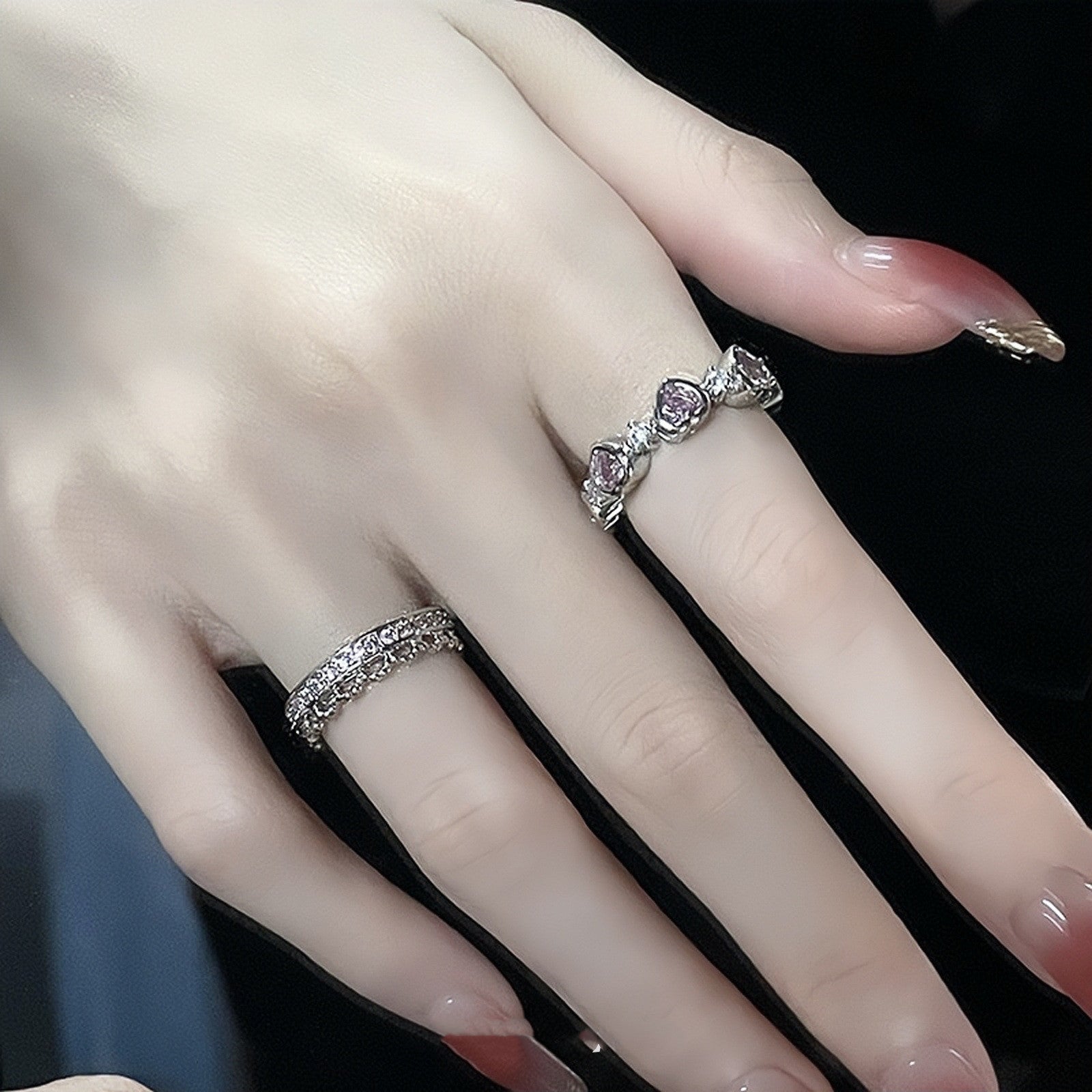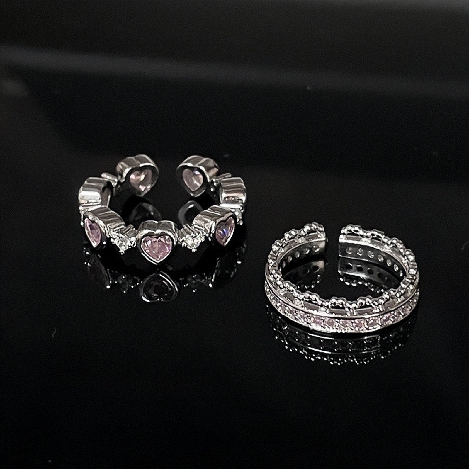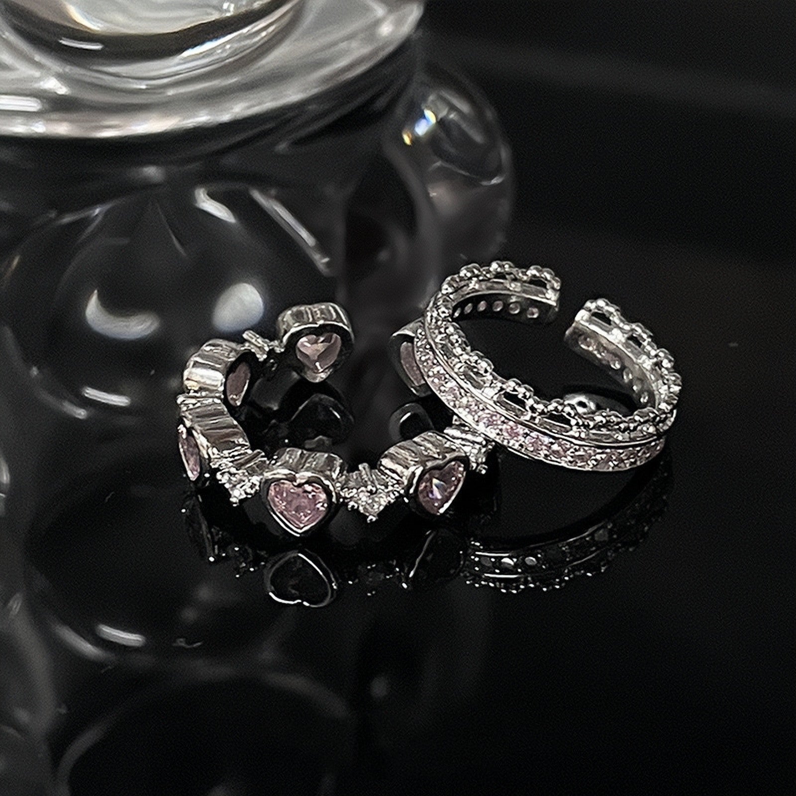 Womens Geometric Heart Ring Copper With Pink Zircon Stone Love Ring Crown Shapes With Electroplated Pink Shine