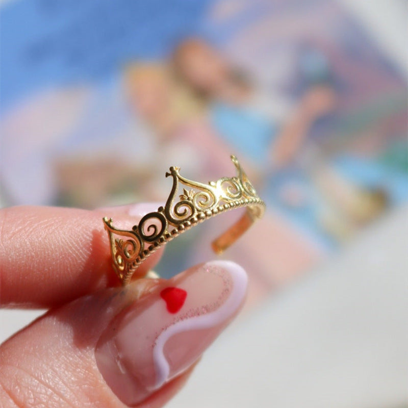 Womens Adjustable Ring Princess Crown Geometric Alloy Electroplated Fashion Jewelry High Quality New Design Stylish