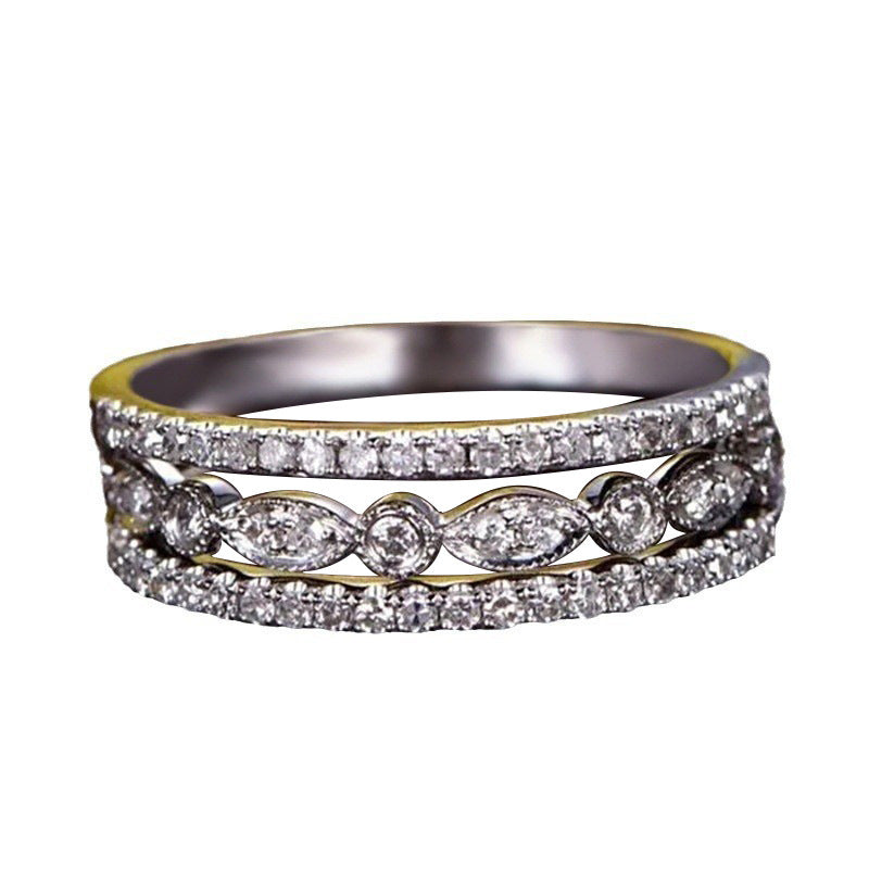 Geometric Copper Ring With Horse Eye Zircon Inlaid White Gold Color Elegant Round Design For Her Jewelry Style